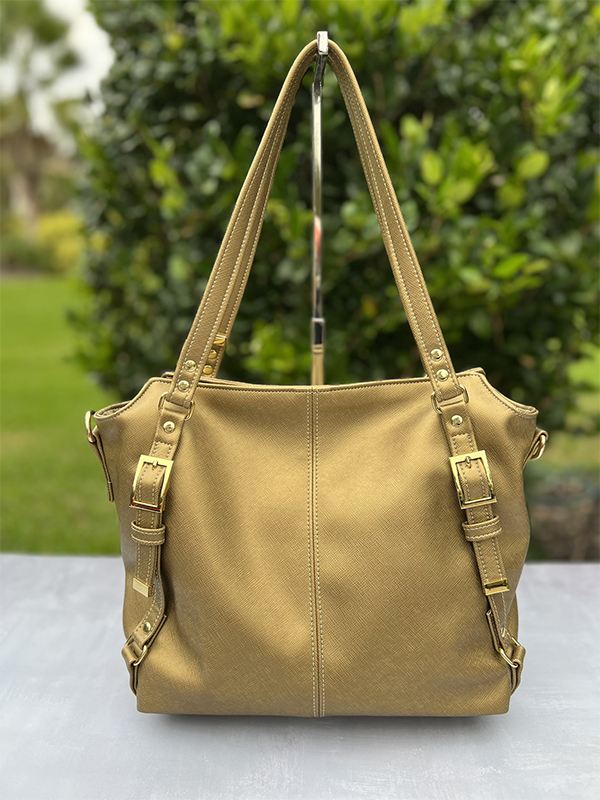 Meet your new over-sized comfy, everyday handbag! This handbag features a classic and sophisticated design, ideal for everyday use or workwear. It is crafted from a textured faux leather material in a warm, golden crosshatch faux leather, with a subtle crosshatch pattern that adds depth and durability to the rich look, adorned with light gold hardware. I do NOT have any more of the gold crosshatch, so you will need to select a different color of faux leather on the exterior, and/or different colored hardware if you don't want this bag.
