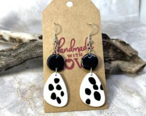 Please keep in mind all items are handmade and therefor small inconsistencies may occur. Some examples of these may include very small bubbles, slight variances of color, or other small that in no way affect the functionally of an item.Each pair of polymer clay earrings is finished with silver plated/ nickel free and just nickel free posts or hooks . Enjoy wearing a beautiful statement piece that is so comfortable and lightweight.Our shop also offers handmade scrunchies in various size and fabrics.