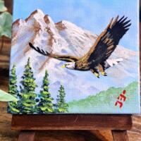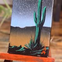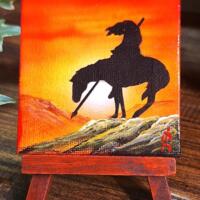 These miniature canvases are hand-painted using acrylic paint, brushes, airbrush, and other artistic methods. Each original design is sealed with several coats of clear spray to protect the piece and facilitate easy cleaning. Although I purchase the easel stands premade, they come in a raw wood form. I process them by cleaning and staining them with either a Cherry or Dark Walnut, and seal them with a clear spray. Due to limited space, each canvas is signed on the back. This is a reproducible design. Since each canvas is individually hand-painted, the canvas you receive after purchase may not exactly match the one pictured in this listing.