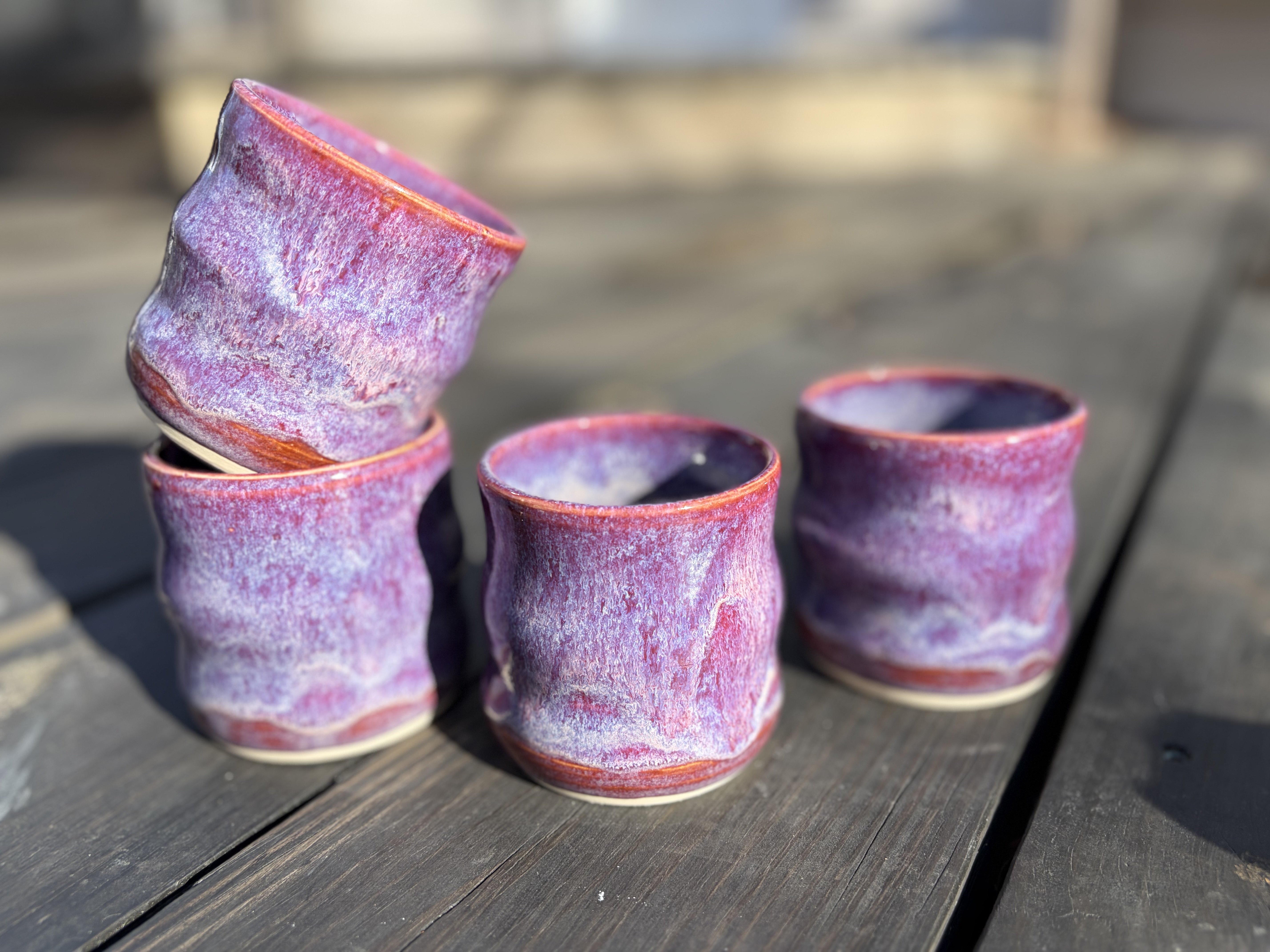 Handmade, wheel thrown cups, glazed with unique glaze combos and fired to a glossy finish.