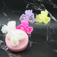The soap is first prepared using the customer's requested soap colors and scent. First, I use a dropper to apply the soap to the center portion of the flower. When this has hardened, I fill the remaining soap mold with the colored soap for the flower petals.