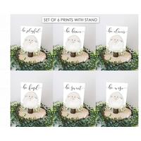 WHAT YOU GET: A set of SIX 5x7 cards, One sided, professionally printed on coverstock & SIX small wooden stand that holds the print