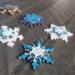 This set of 7 winter snowflake magnets is the perfect way to celebrate the Holidays! These will look great on your fridge, but also an adorable option in an office setting. These are each one of a kind! No 2 are alike, just like real snowflakes.
