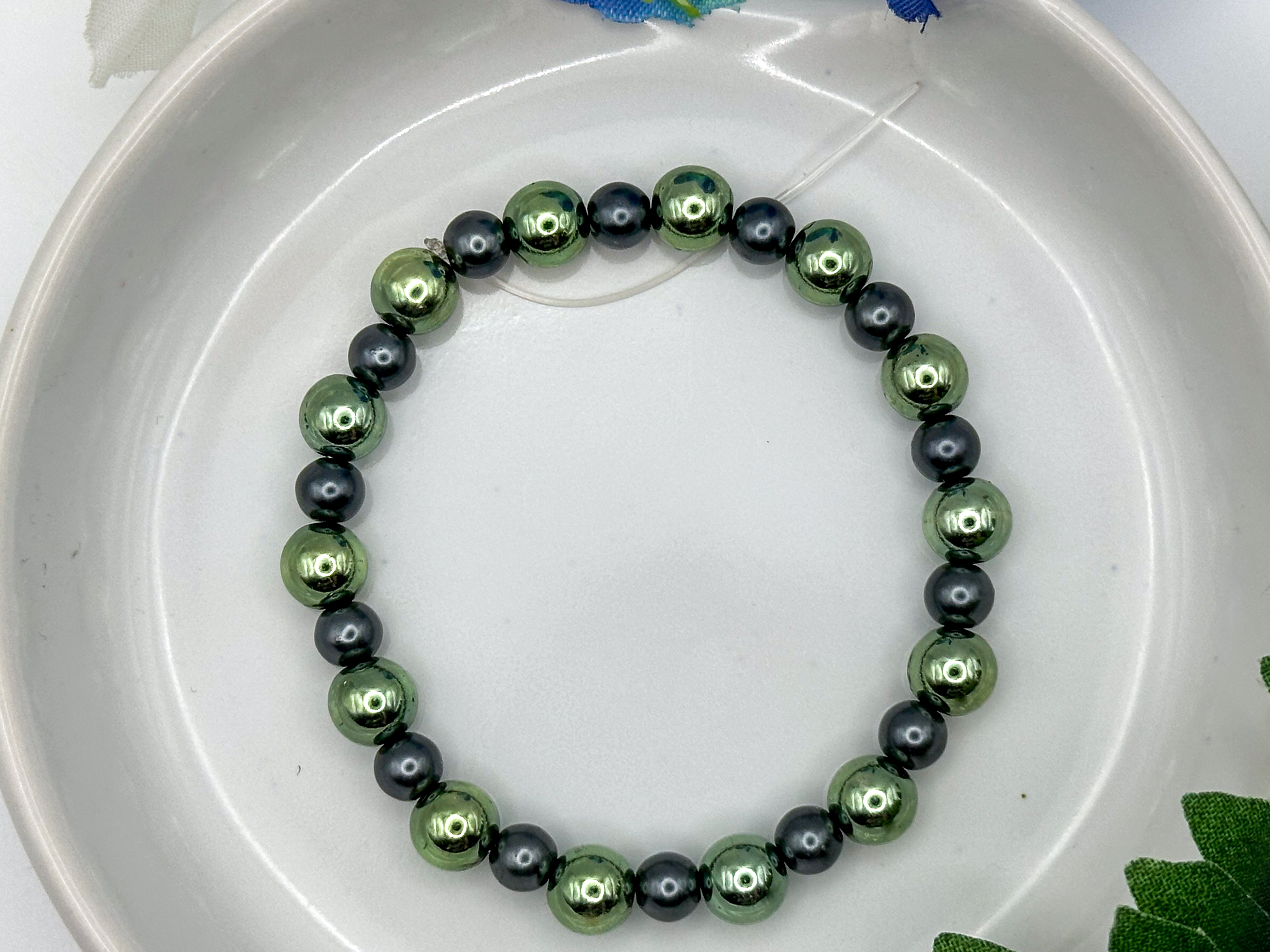 Shadow Grove Bracelet – Moss Green and Smoky Metallic Beads