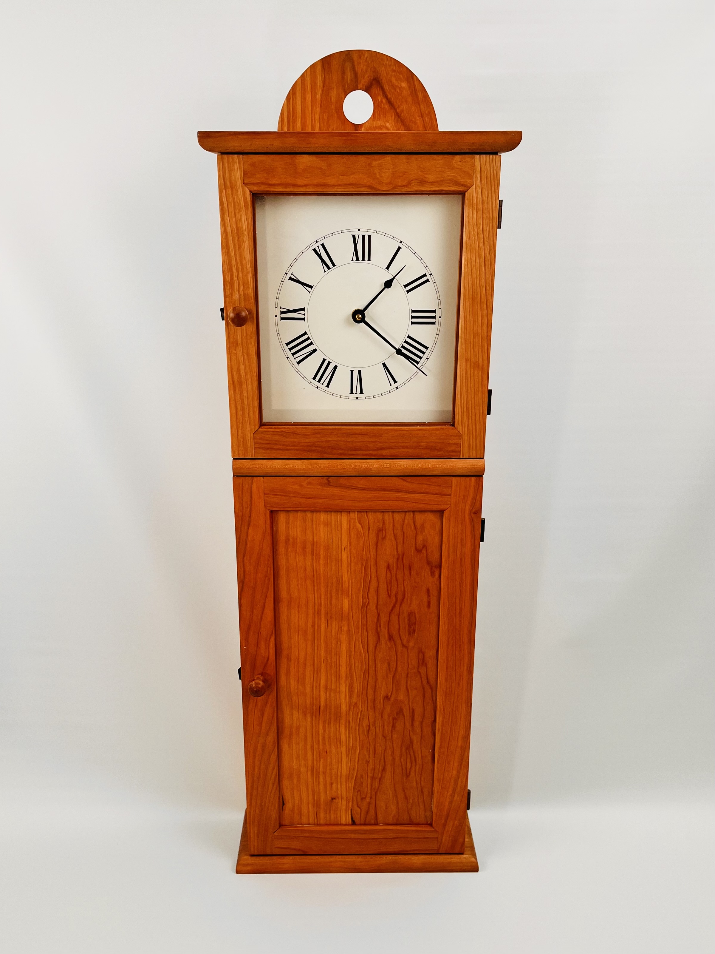 Historic- looking solid cherry timepiece with reliable quartz movement.