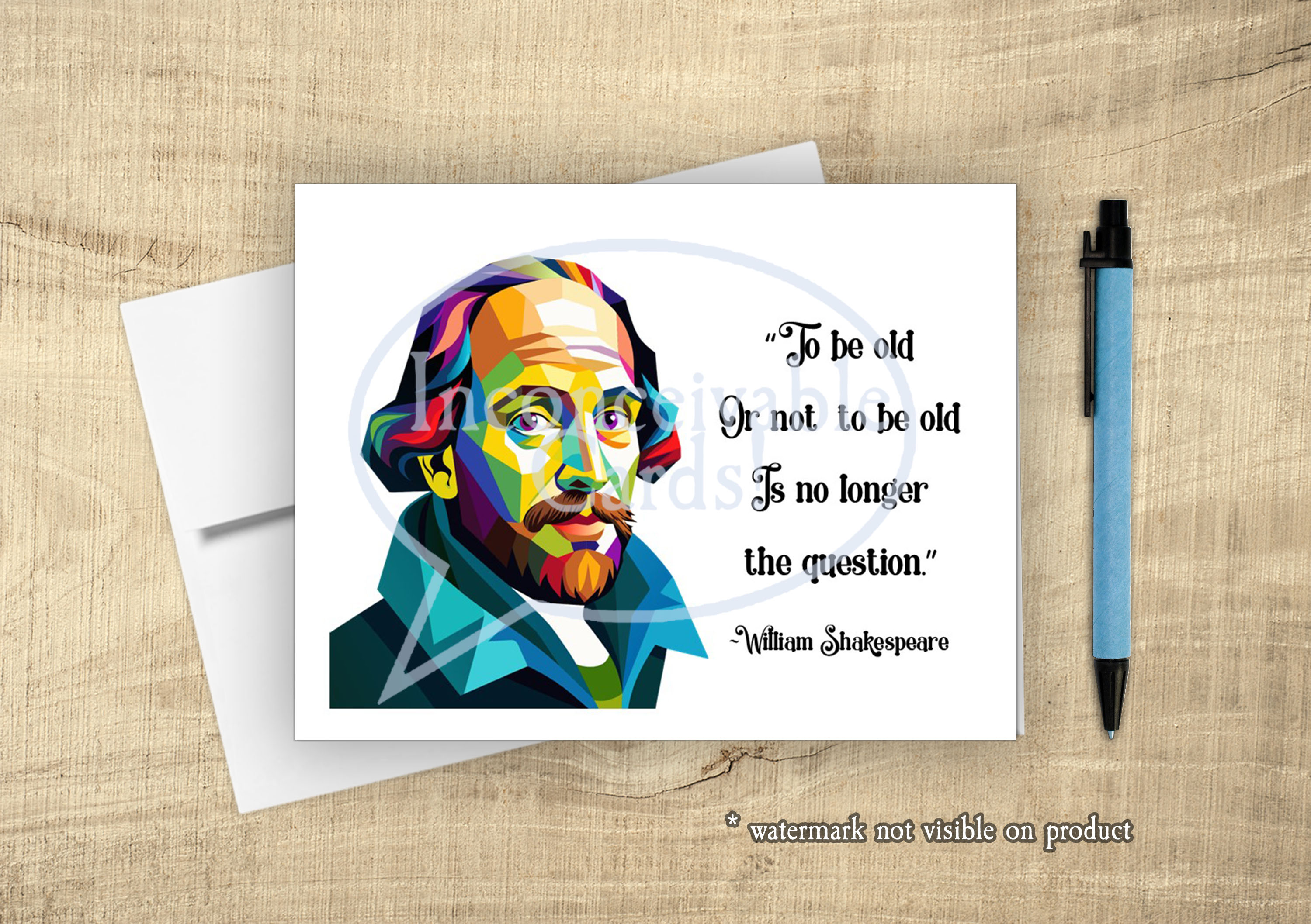 A modern twist on the Bard’s most famous line, because when it comes to birthdays, there’s no escaping the truth: you’re older. This bold, colorful Shakespeare card delivers birthday wit with Elizabethan flair, making it the perfect choice for bookworms, theater lovers, and anyone who likes their humor with a side of iambic pentameter.