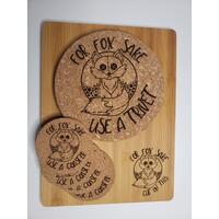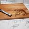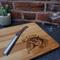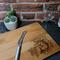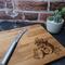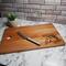 I recommend cutting on the side opposite the engraving so as to not damage the image. As these are wooden cutting boards, they cannot be soaked or put in the dishwasher.