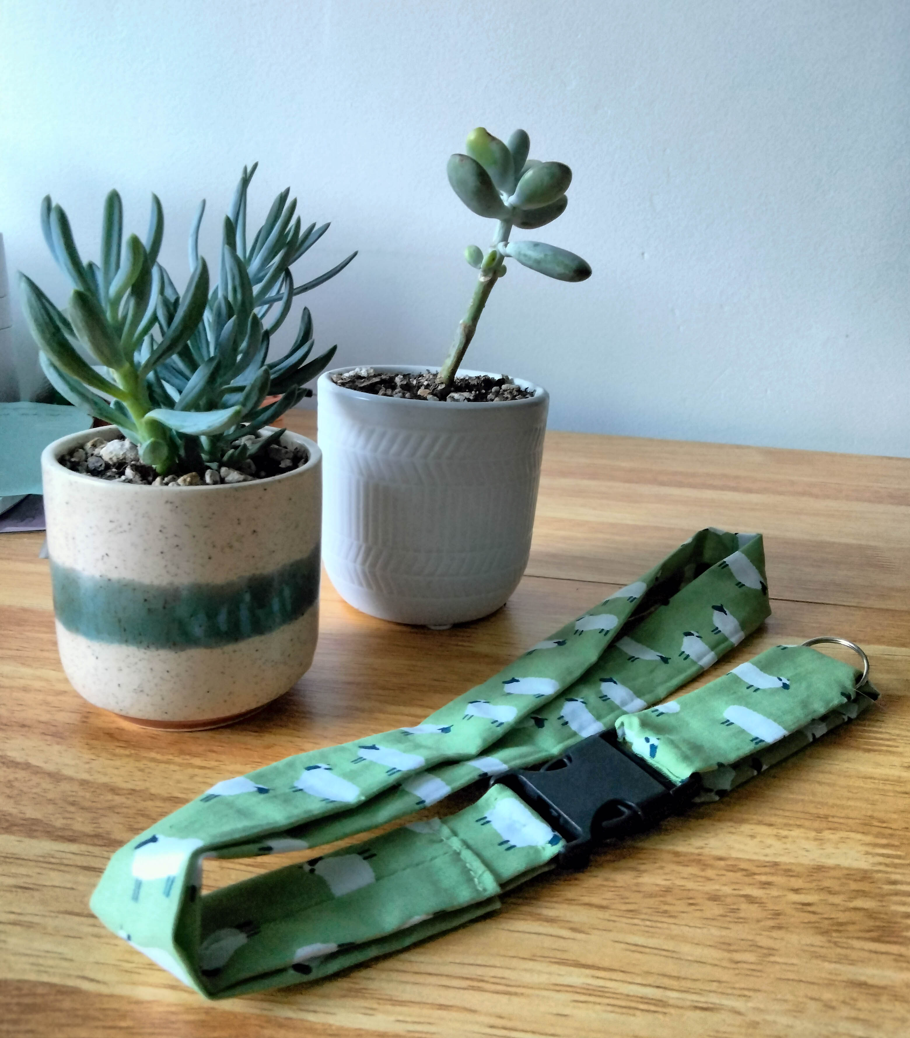 Super fun, fluffy sheep lanyard on a grassy green background. My lanyards are made with comfort in mind. Each one comes with a clip, so you can easily use the bottom separately. It also comes with a split keyring to add keys, keychains, etc. The top has a U-shape to fit nicely on your neck. This design uses cotton fabric which is comfortable and durable. Length is 21 inches, width 1.25 inches. The bottom piece is 4.25 in. long, with about a 9 in. circumference. It will fit on your wrist, for small wrists only. Removing the bottom is great for temporary use without having to take off your lanyard. That also makes it short enough your lanyard won't bump into your leg when driving. Functional and adorable, I put my heart into my products and hope they make you smile!