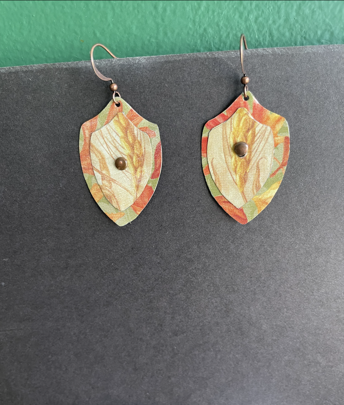 Care Instructions: As with any jewelry, the easier you treat it, the longer it will last. The double-sided pendants are not water proof. The tin earrings are water proof, although some of the older tins may rust as they have a higher iron content (I think this patina only adds to their charm).