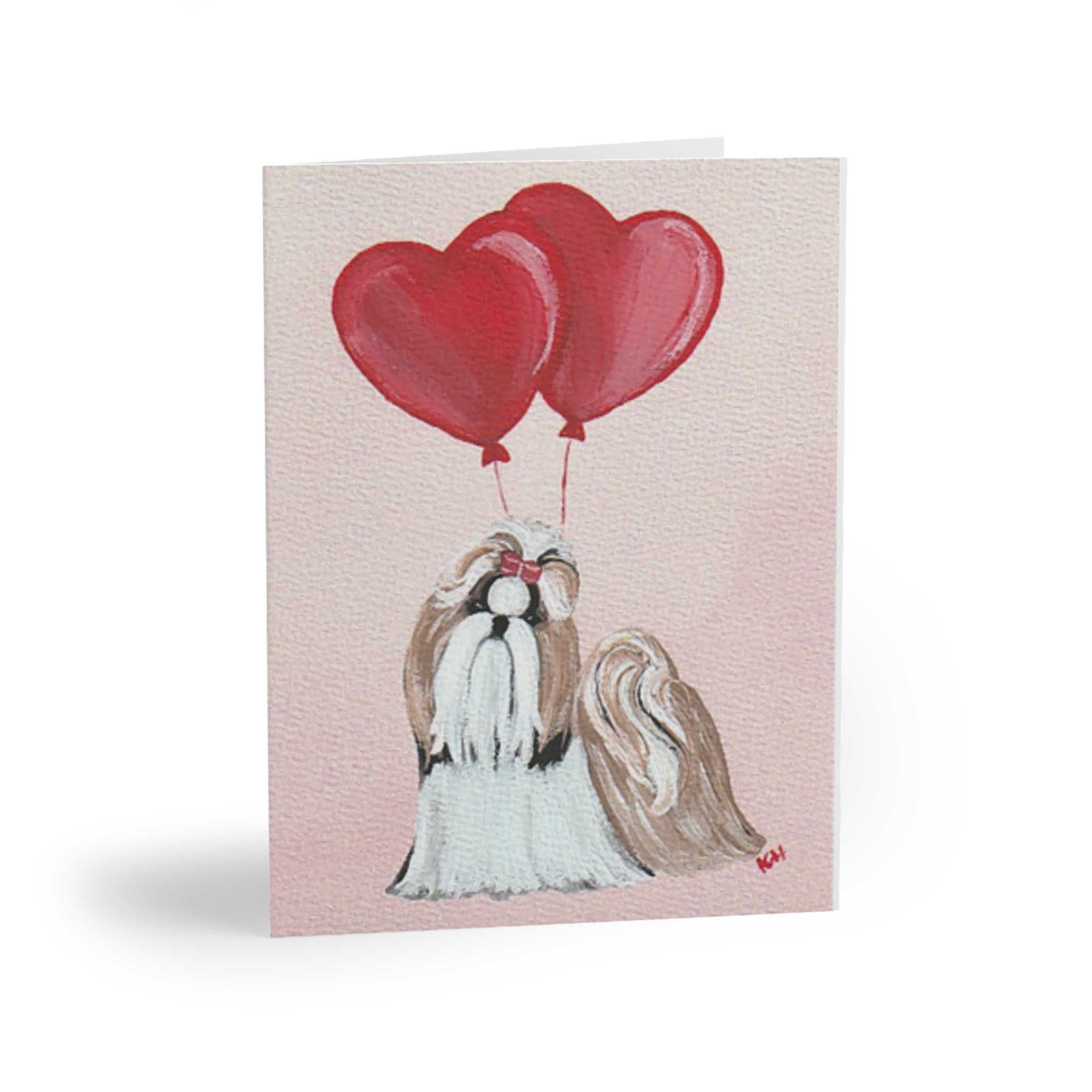This painting is of an adorable Shih Tzu enjoying her red heart balloons! This was printed from my original in acrylic on 300gsm watercolor paper.
