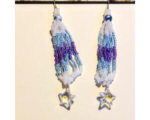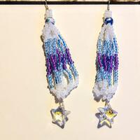 Made with gorgeous seed beads and glass mushroom beads. The thread is nylon and the hooks are hyperallergic, but are real metal.