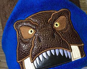 T-Rex Dinosaur Embroidered Hooded Bath Towel