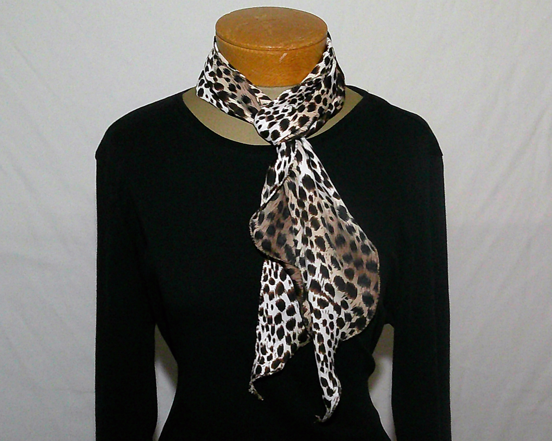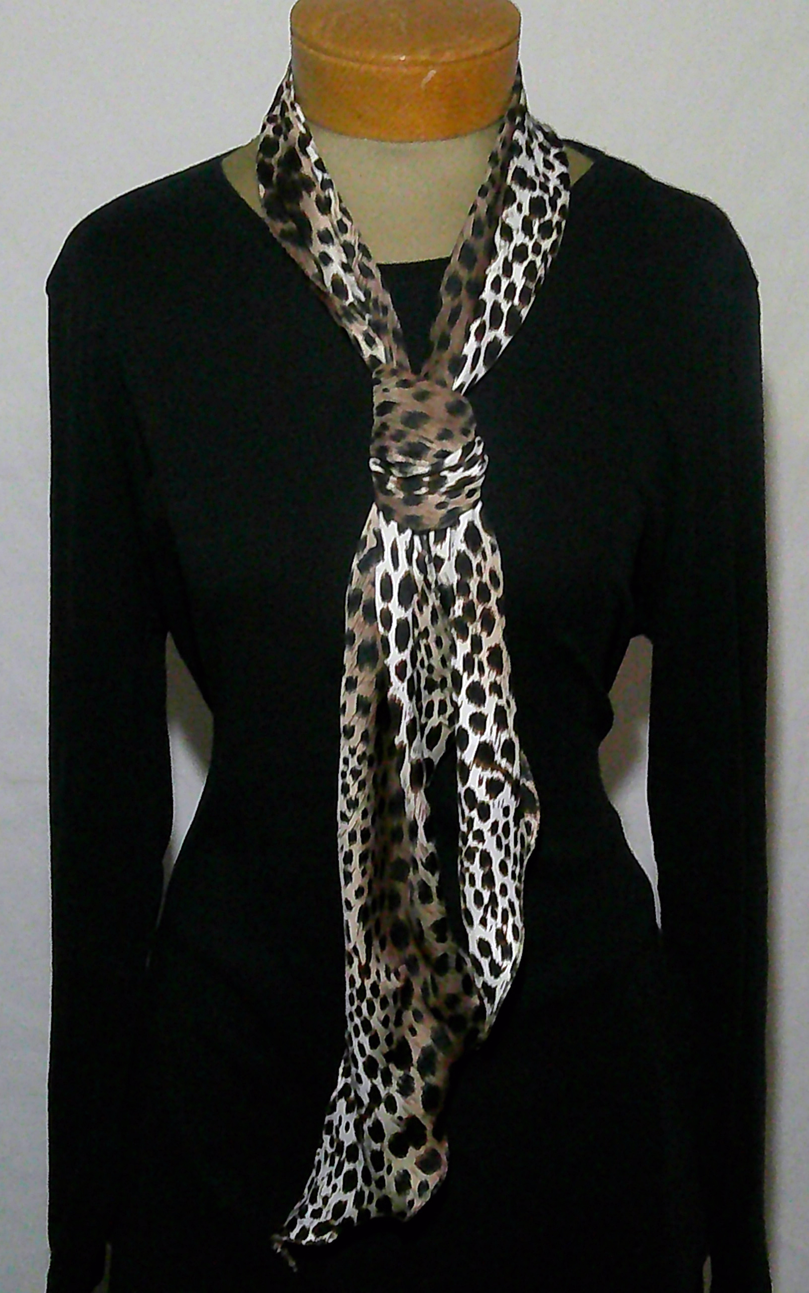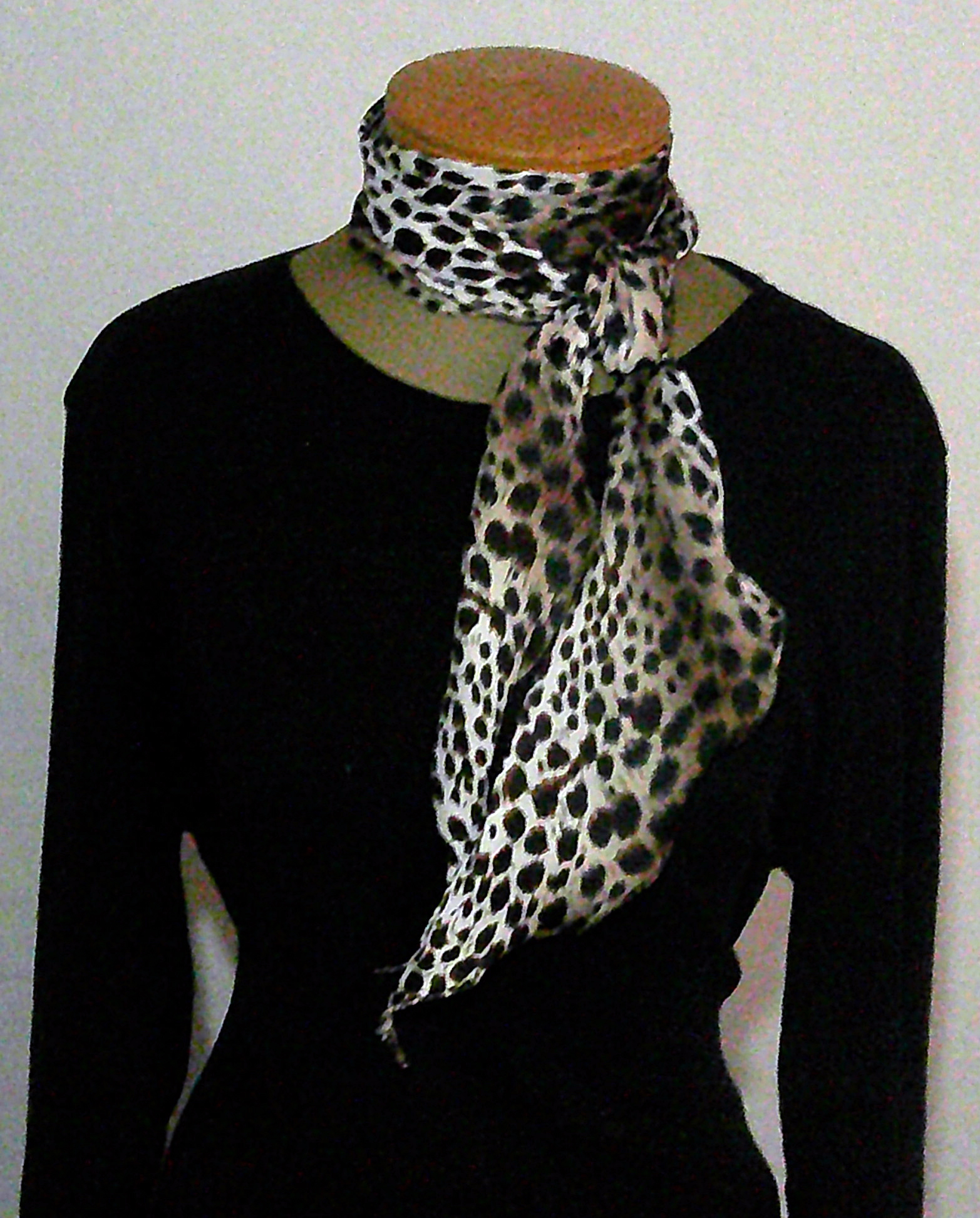 This luxurious silk leopard scarf has just the right amount of sexy mixed with being provocative and sensual. It not only looks spectacular but feels sensational. At 59 inches long and 7 inches wide at its widest part, it offers multiple ways to be tied and used. The edging technique is perfect for this silk scarf making perfect curves and edges. It falls and drapes so nicely, that it becomes a timeless piece for your wardrobe.