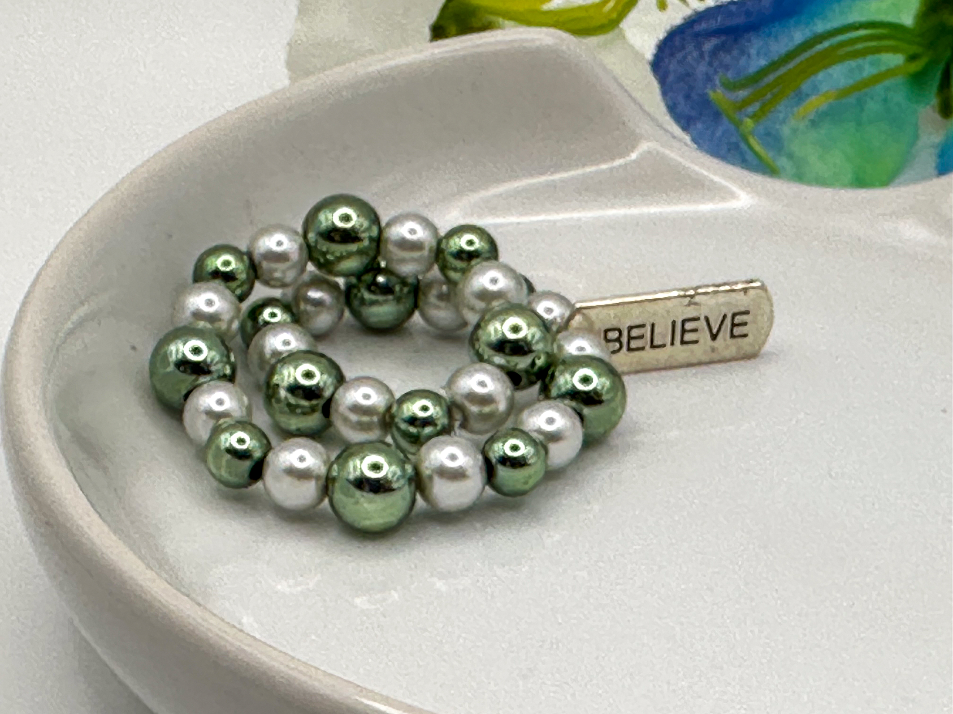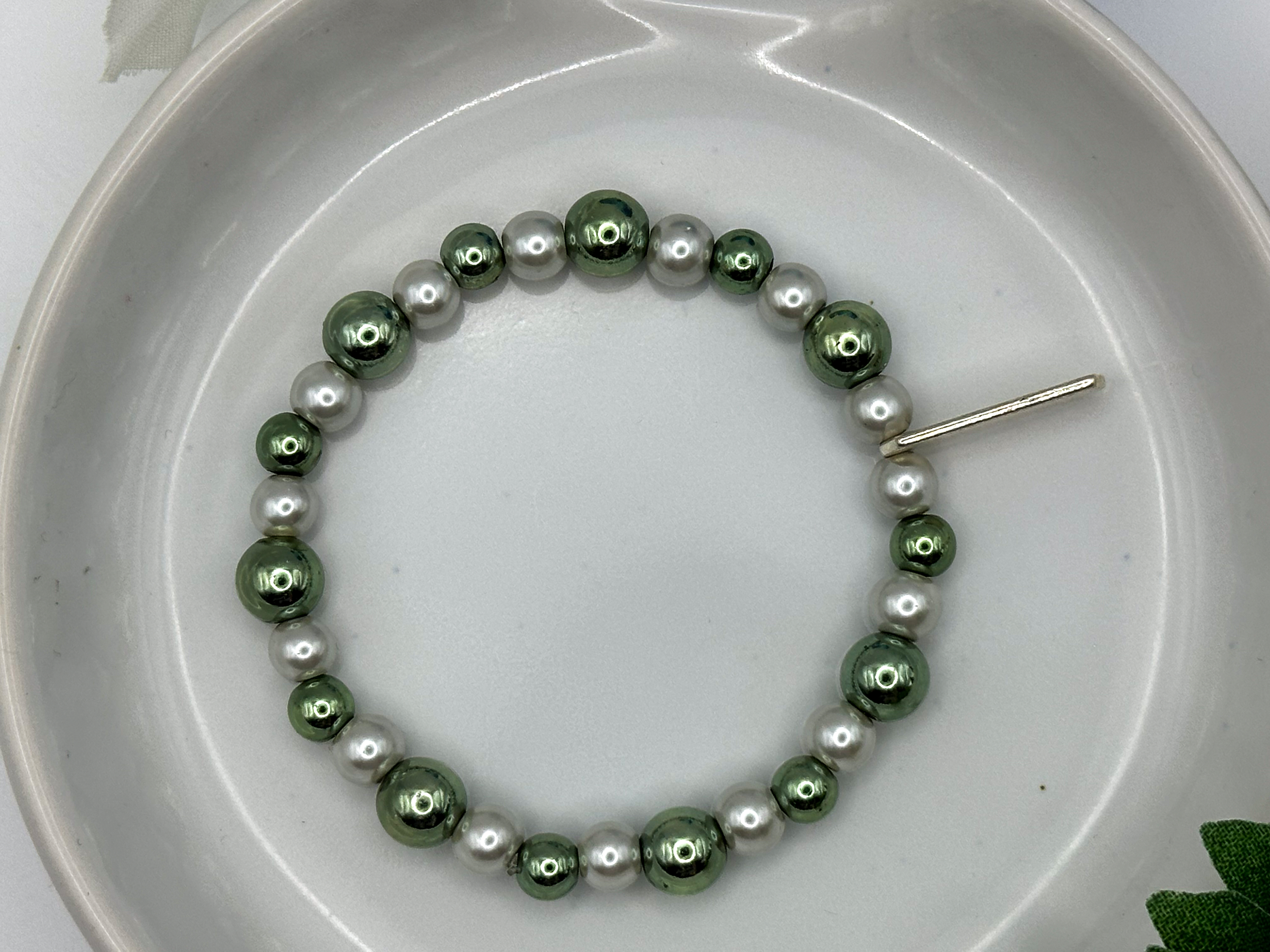 Silver Fern Bracelet – Pearls with Deep Green Metallic Orbs