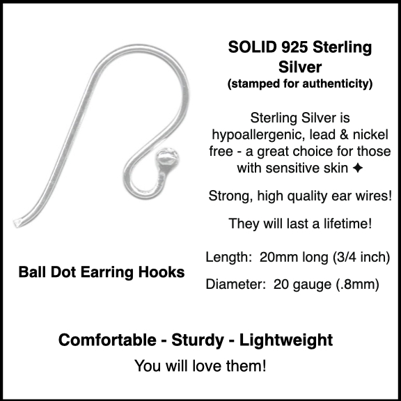 SOLID 925 Sterling Silver (stamped for authenticity) Ball Dot Earring Hooks.