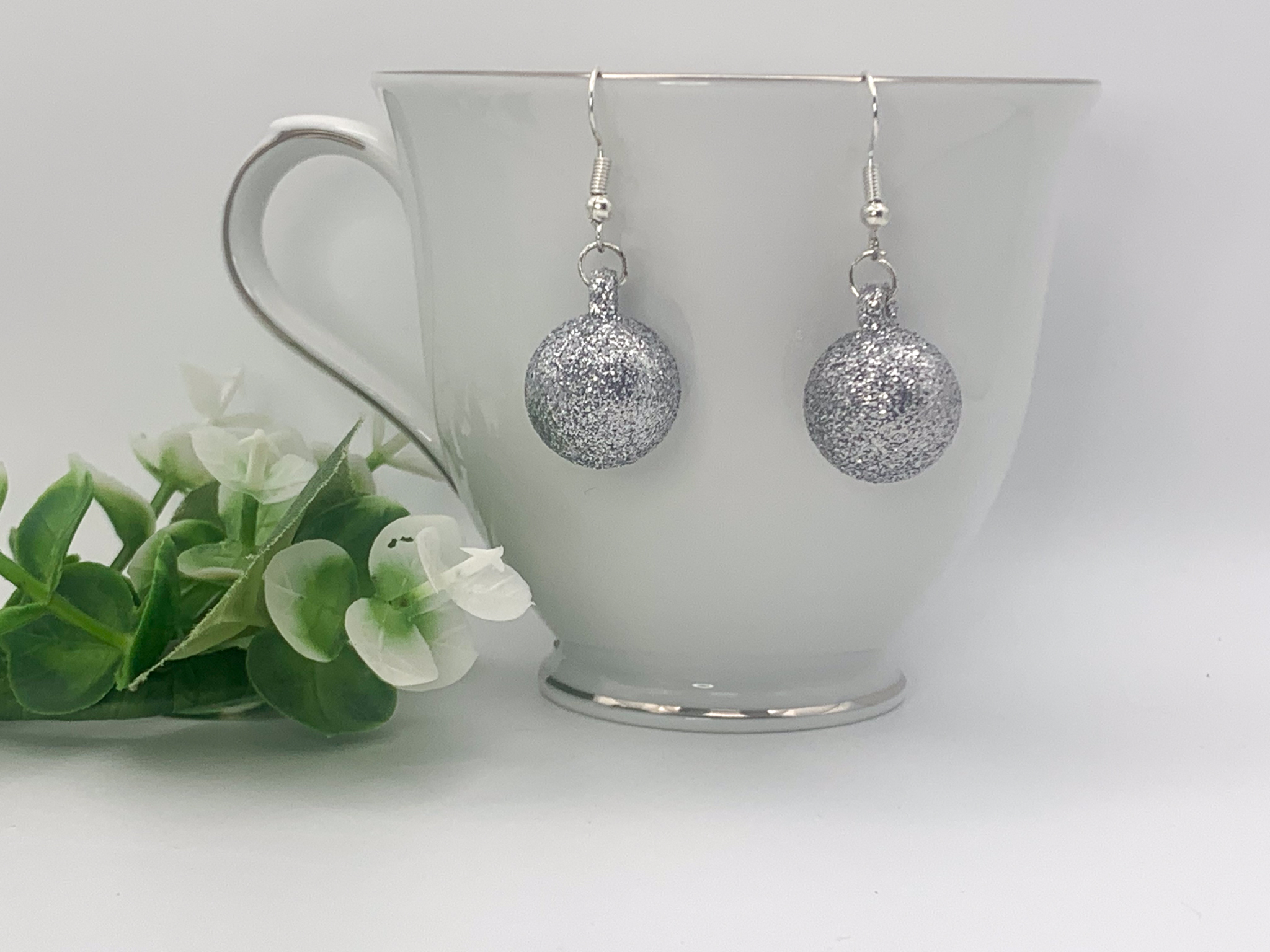 Bring sparkle to your holiday season with these shimmering silver ornament earrings! Lightweight and festive for any occasion.