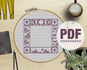 Cross Stitch Sampler Adventure Border (with Moon Phases, Moun...