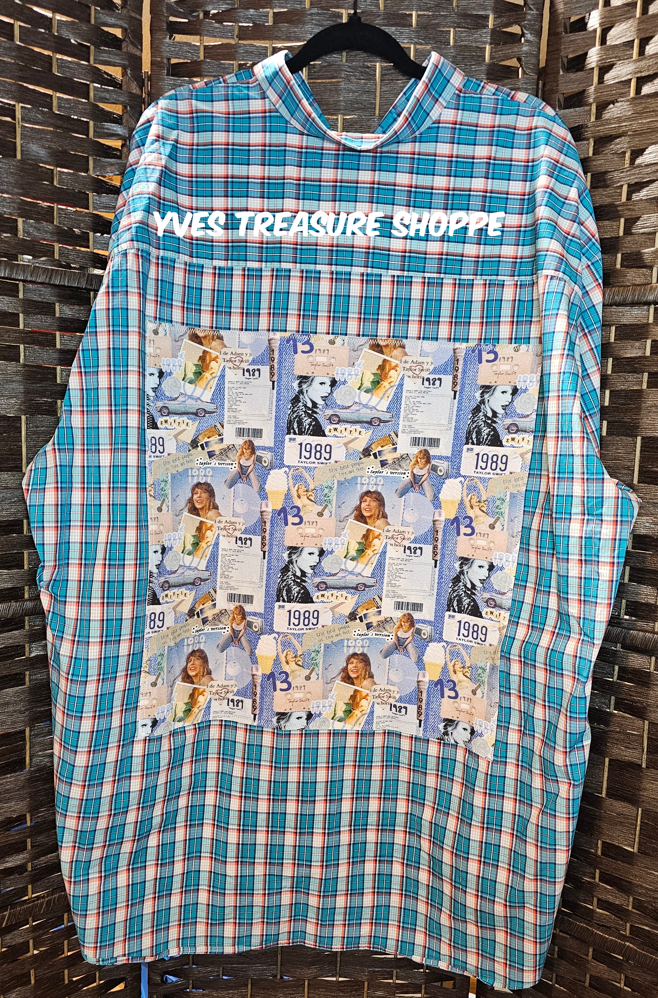 This is an Upcycled Cutter & Buck 3XB Shirt. 32 inches across pit to pit. 36 inches long from top of shoulder to bottom of shirt. Embellished on back with a fabric Panel.