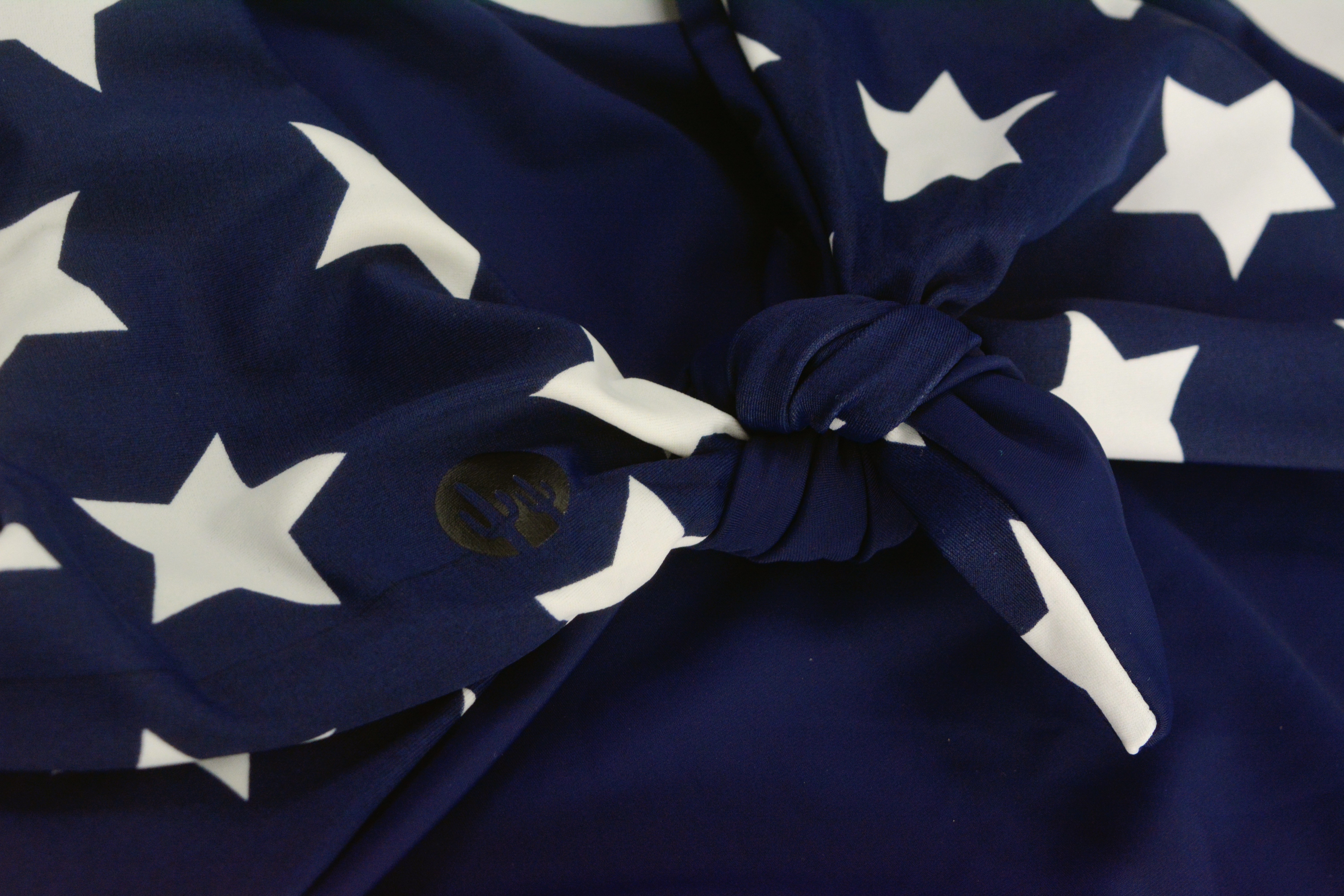 This is a handmade reversible one piece with a tie back! It is ready to ship when you order. Should go out within a few days!