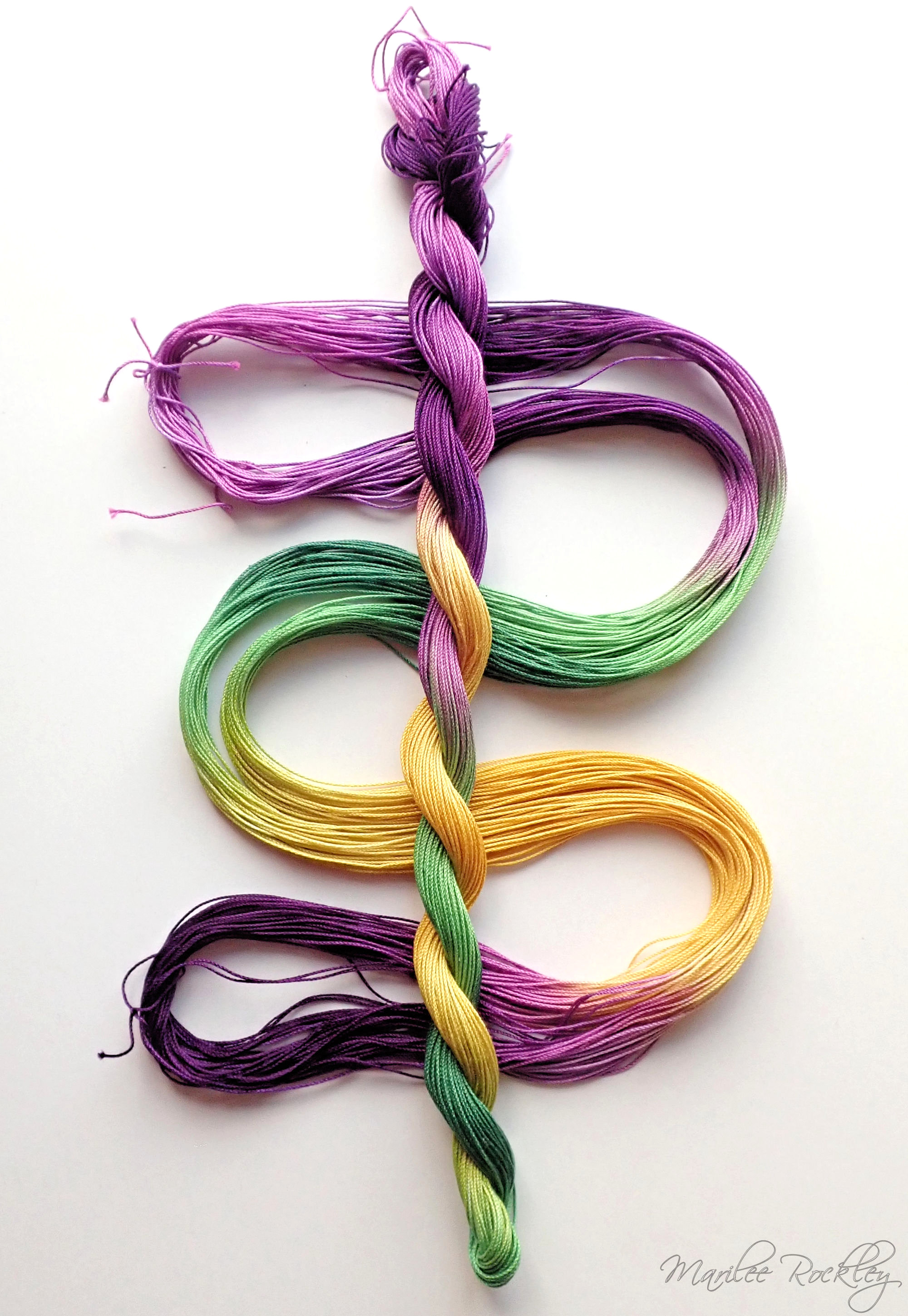 Size 20 "Mardi Gras" hand dyed thread tatting crochet cotton 6 cord cordonnet