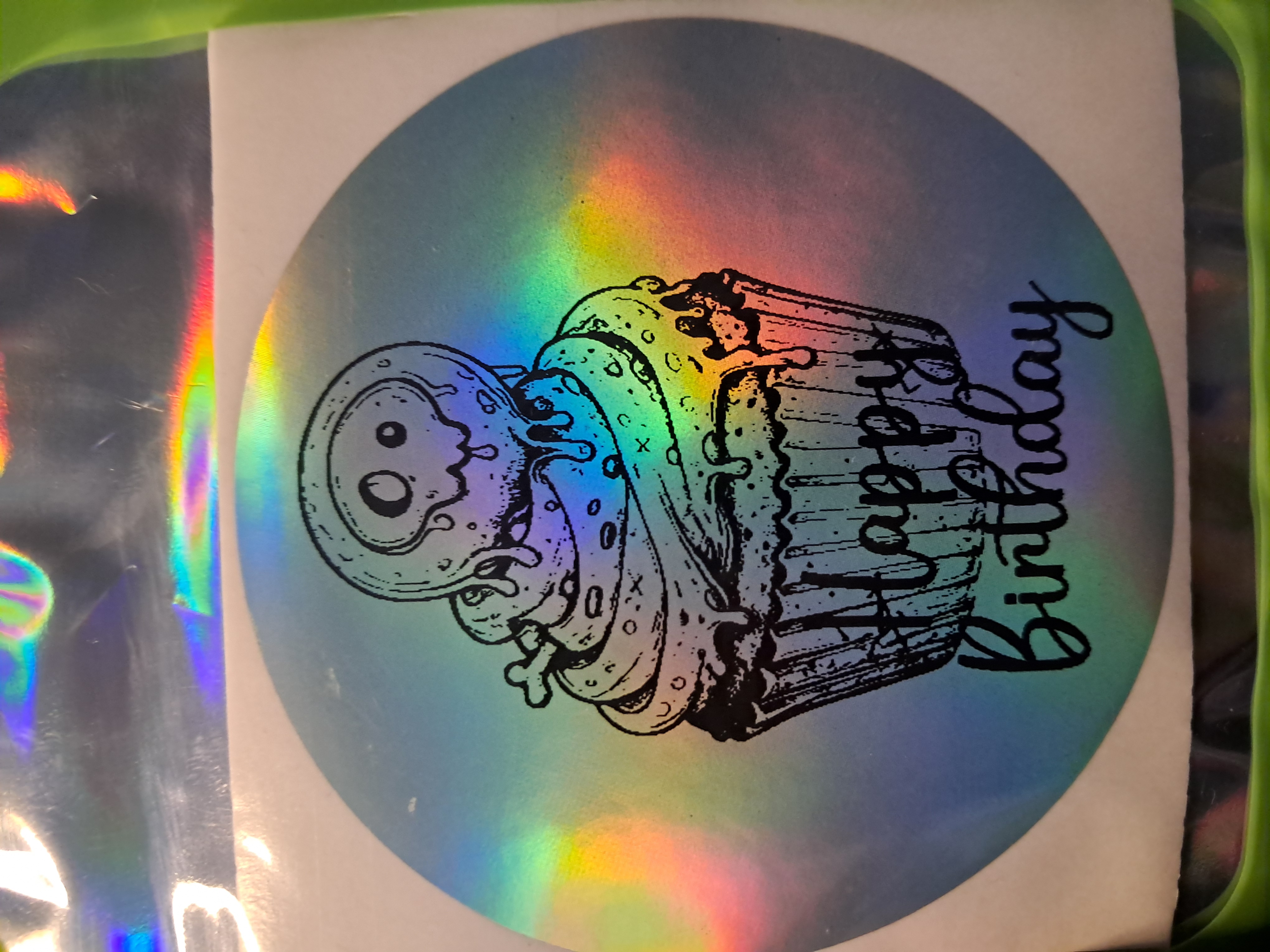 Skull Birthday Cupcake holographic sticker set featuring creepy-cute cupcake designs with “Happy Birthday” details.