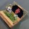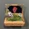 Wooden carved box embroidered black velvet Brass looking decorative ornamentation painted skull bed of moss and crafted mushrooms