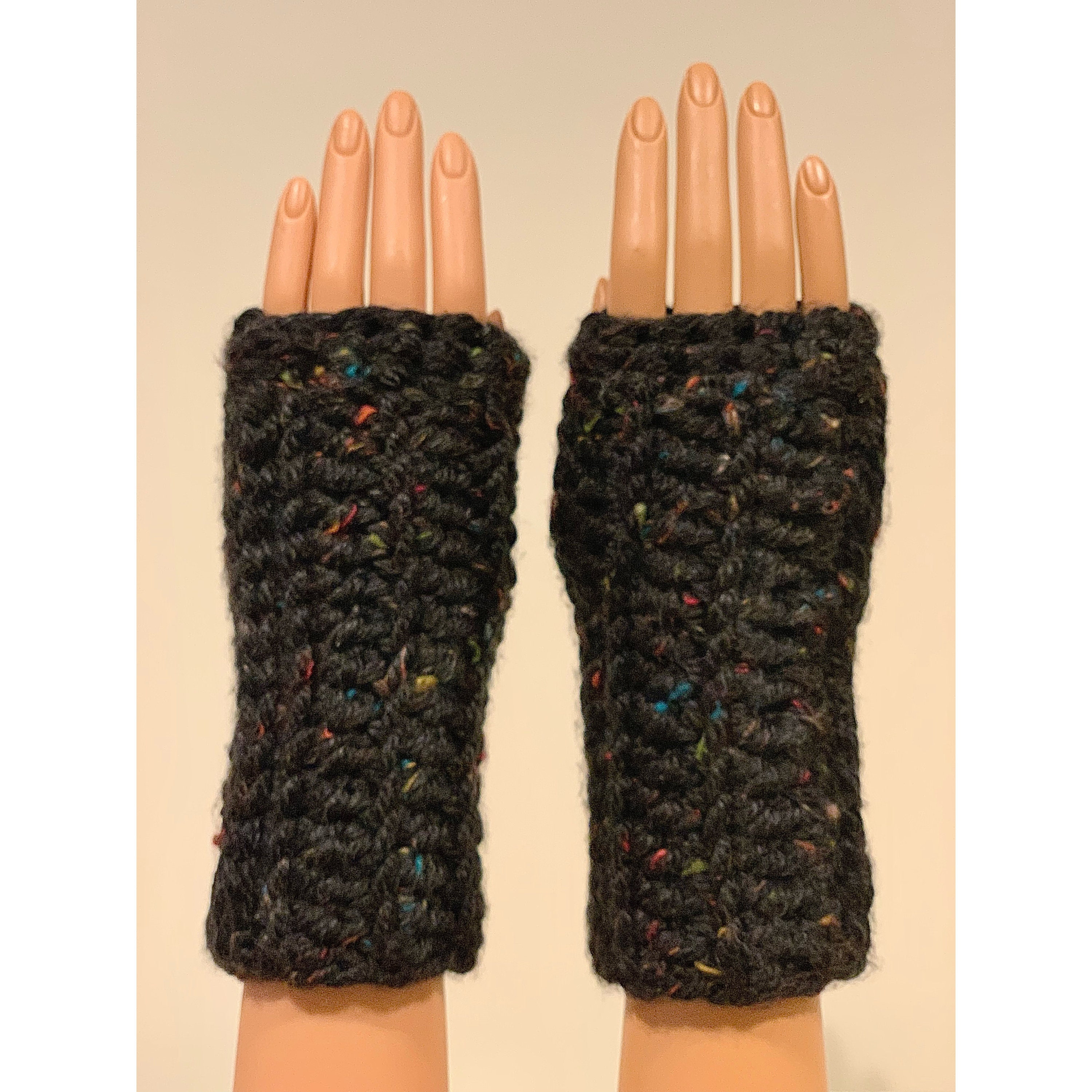 Multicolored fingerless mittens may have different color arrangement than those shown in picture or from each other, adding to the character of the mittens by making them more unique. Because they are designed to be worn on either hand, multicolored fingerless mittens may have a different look on the other side, giving you different color options. Wearing these with a coordinating eternity scarf is a fun way to make a stylish statement, as each mitten may not identically match yet compliments the entire look. Also, please note that differences in computer monitor settings may cause slight color variations. In addition, natural differences in colors from the way my variegated yarn is dyed may result in one pair of mittens varying from another.