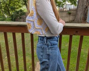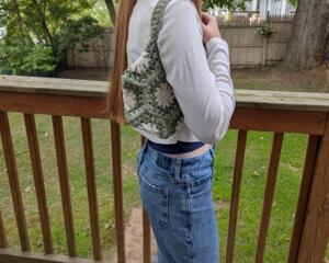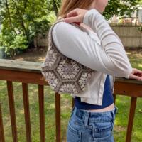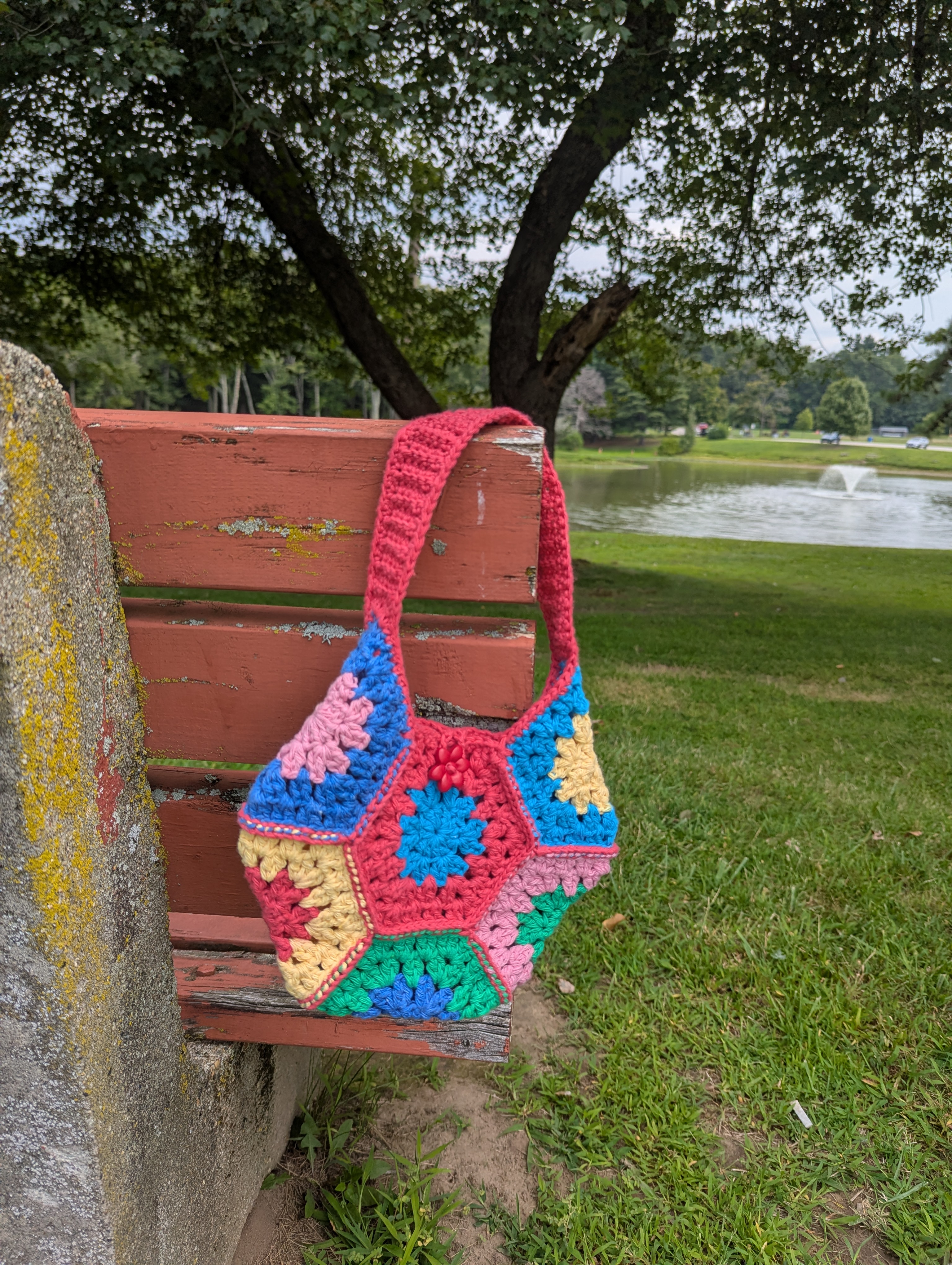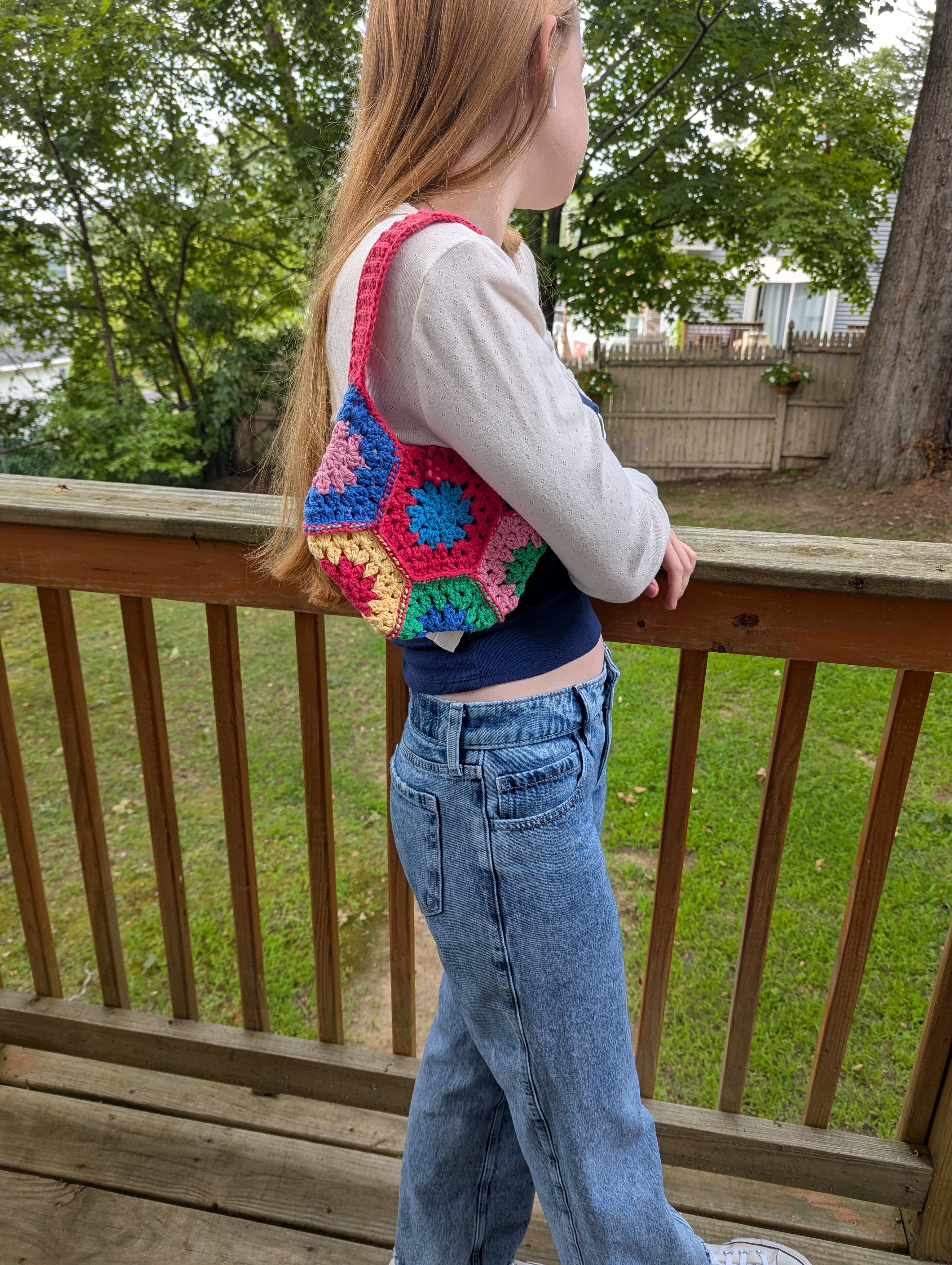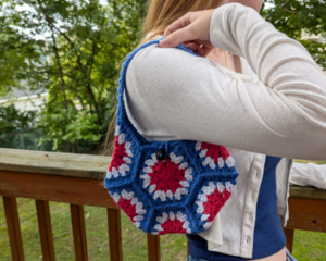 This crochet hexagon bag is small but mighty! Made with a blend of 85% cotton and 15% polyester yarn, it's both durable and has enough give to accommodate all of your must-haves when you're on the go. The handle is made using a special stitch, which allows it to stretch just enough to wear comfortably on your shoulder. The hexagon bag also includes a center button and loop, allowing it to hold all of your important items safely inside. Machine washable and built to last. This hexagon bag would make a great gift for friends or family, or a lovely treat for yourself!