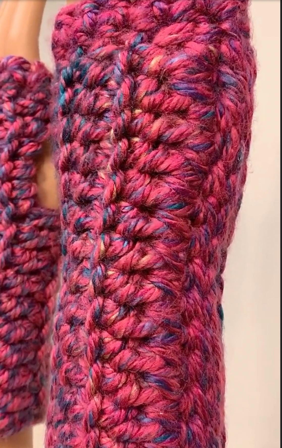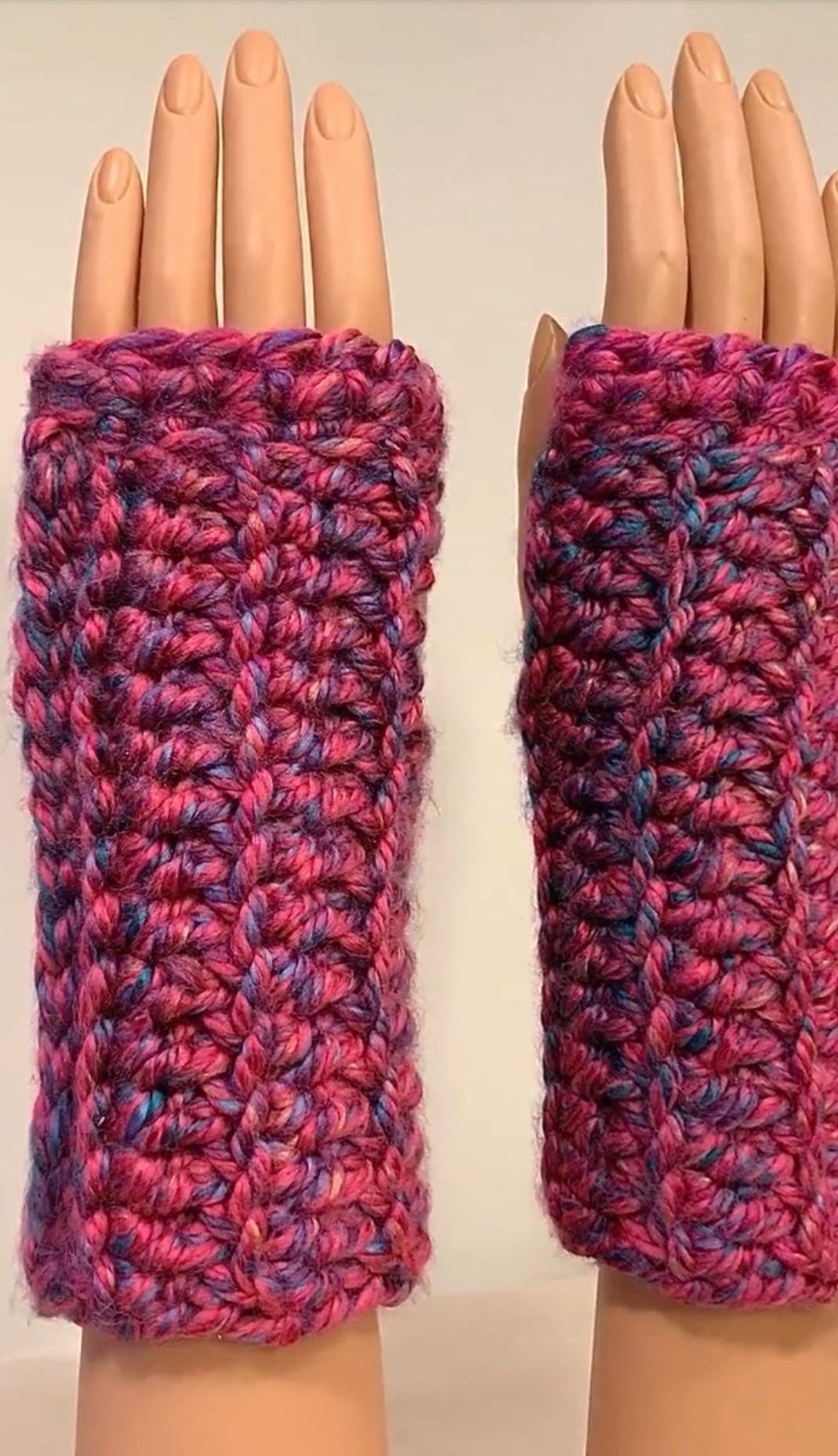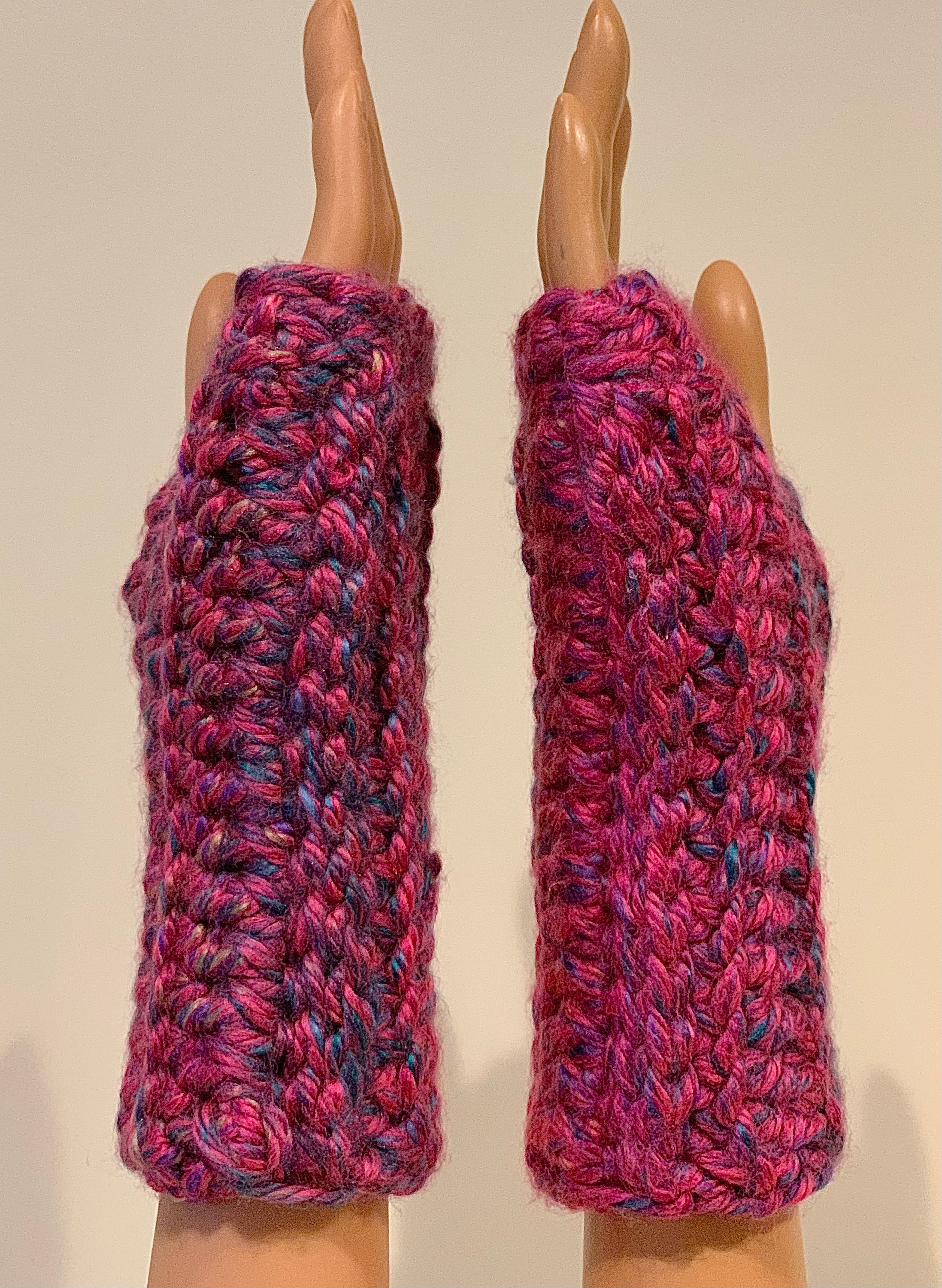 Whether you are shopping for a child, a teen, a college student, or an adult of any age, these fingerless mittens / wrist warmers will make a great yet practical gift that will be used. They are great for texting, playing musical instruments, typing and writing, driving, reading—whenever you want both warmth and accessibility, these fingerless mittens work wonders! Plus, the yarn used is sure to add a bold and chic touch to your look. I designed and crocheted this item by hand, using washable and dryable yarn. I also created my own pattern for my work, making this item extra unique.