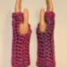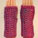 These fingerless mittens are suitable for both outdoor and indoor use. They are stylish and cozy, coordinating beautifully with my eternity scarves and other crocheted creations (hats, headbands, clip-on flowers, and more).