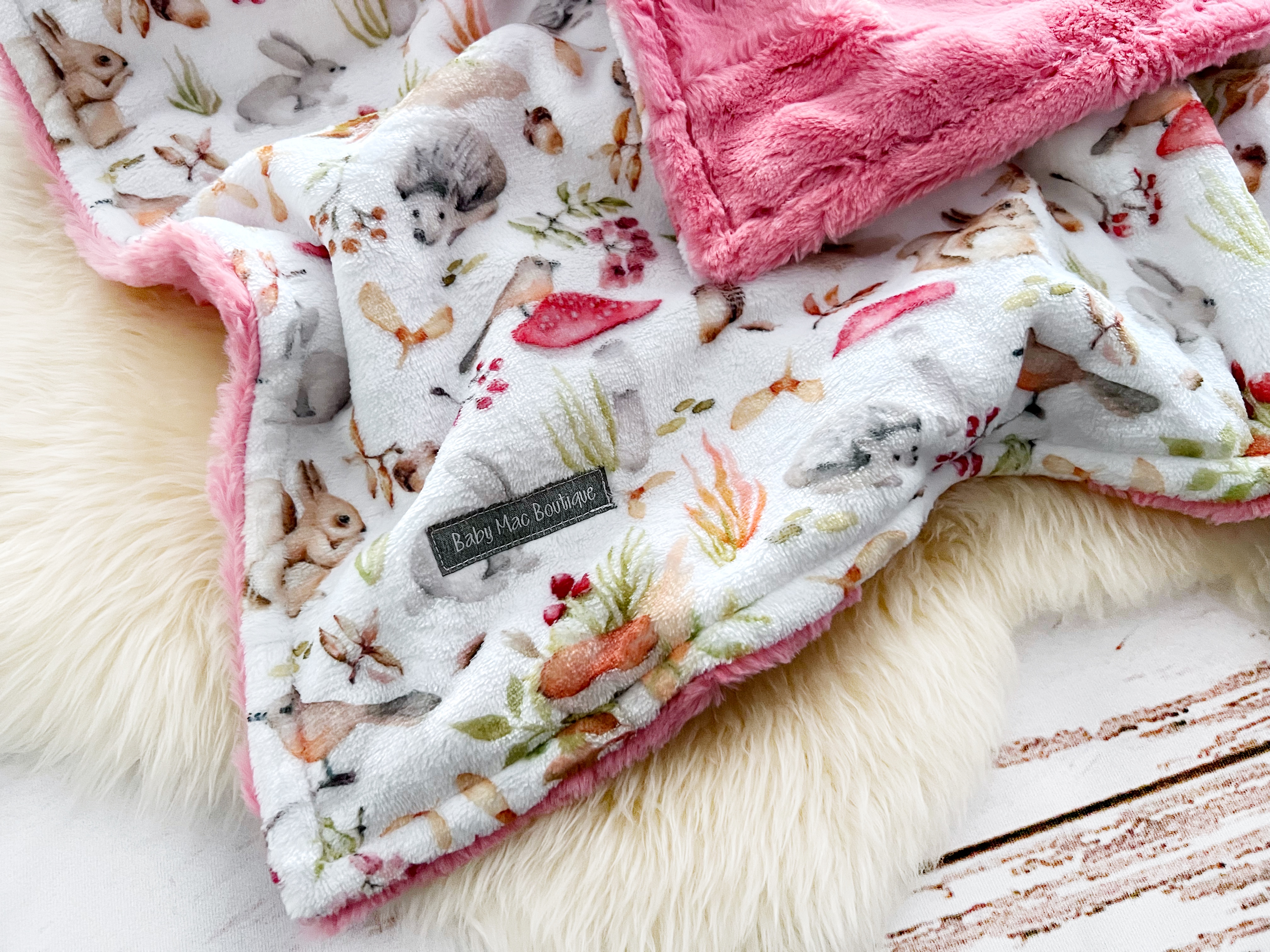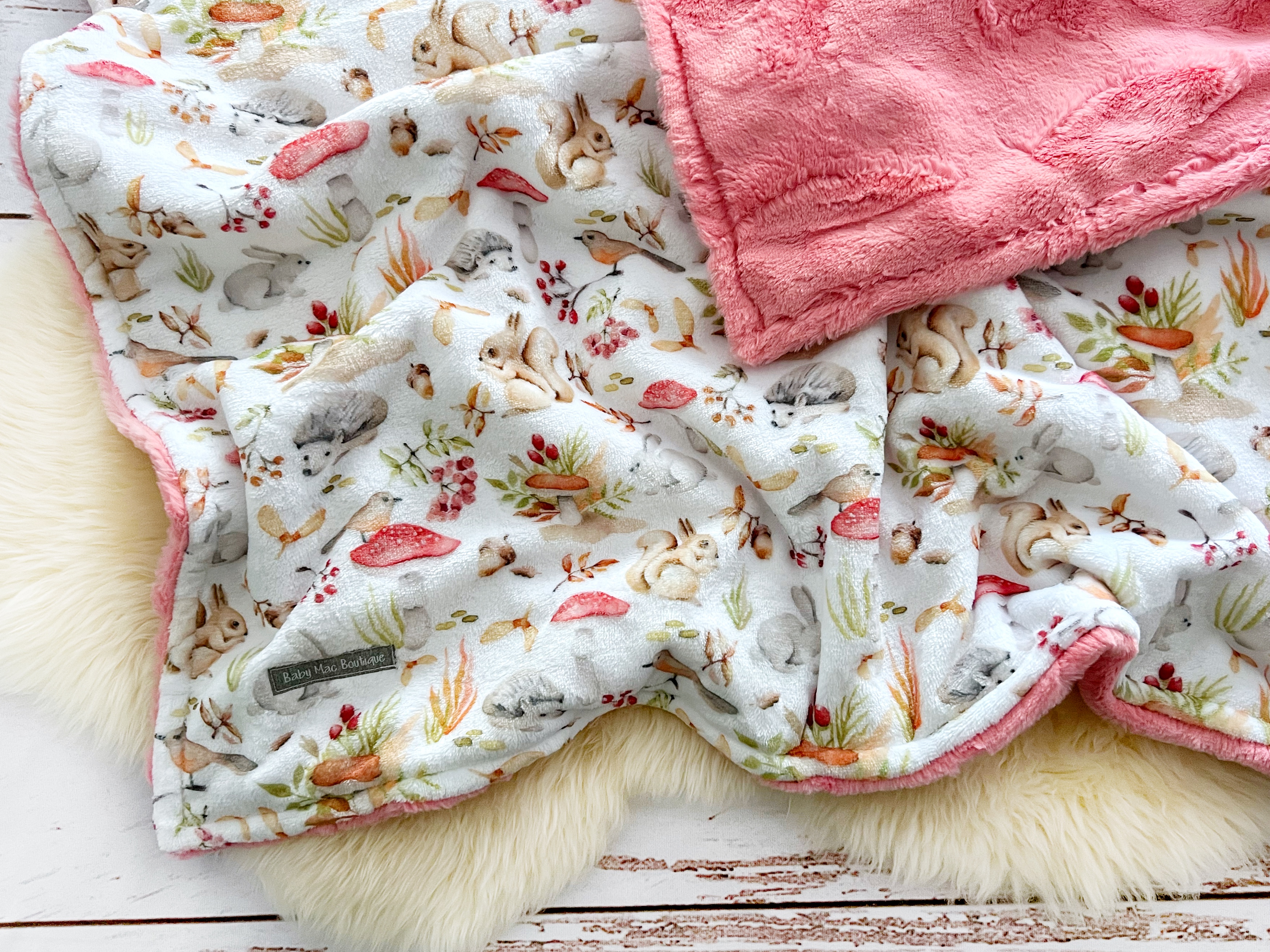 Small Minky Blanket - Fall Critters/Coral Hide