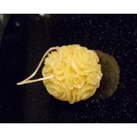 This cute little pinecone is 2oz and made of raw beeswax. It is unscented, although beeswax has a natural honey fragrance.