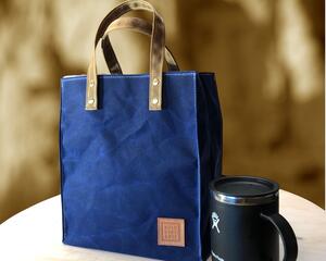 A Small Tote Bag, Handcrafted with the highest quality waxed canvas, so that you have a rugged, yet stylish tote that will last for years. Carry your lunch, or your daily essentials in this finely crafted little bag, made in nature, in a tiny workshop on wheels!