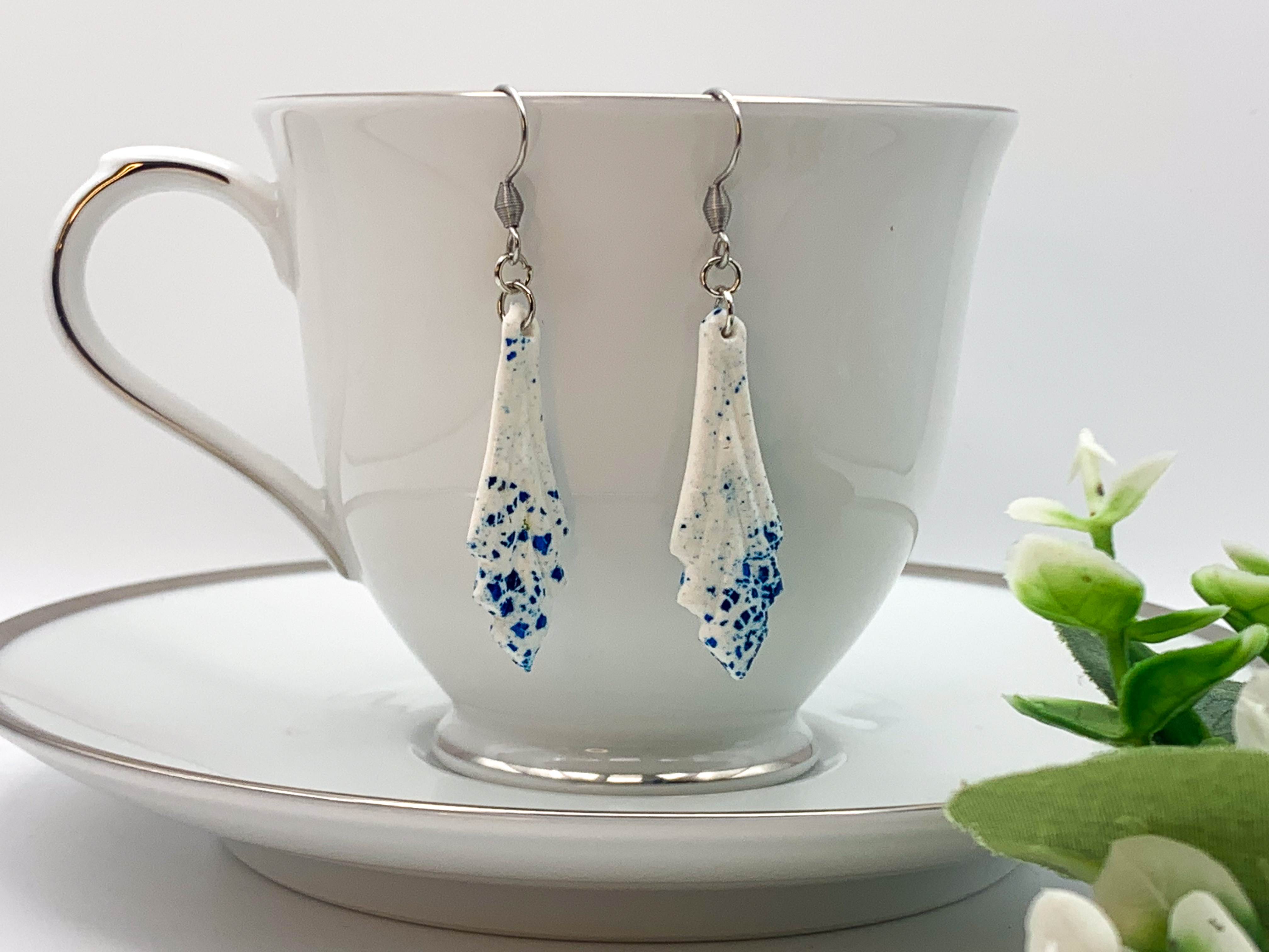 These elegant earrings look like winter’s first snow kissed with icy blue speckles. Minimalist yet striking, they’re perfect for anyone who loves a clean, modern aesthetic with a touch of whimsy.