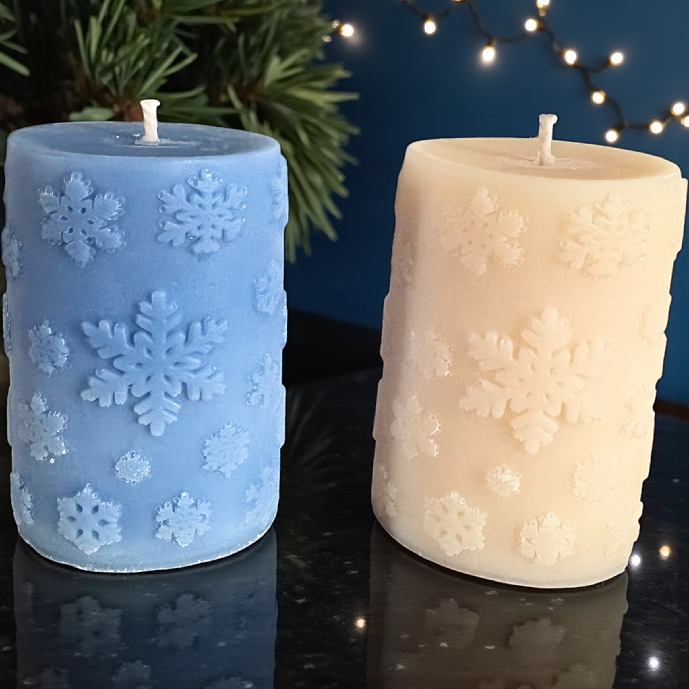 Our snowflake pillar candles are sure to add a cozy touch to your home. Choose your favorite scent to enhance the atmosphere and create a warm, inviting space.