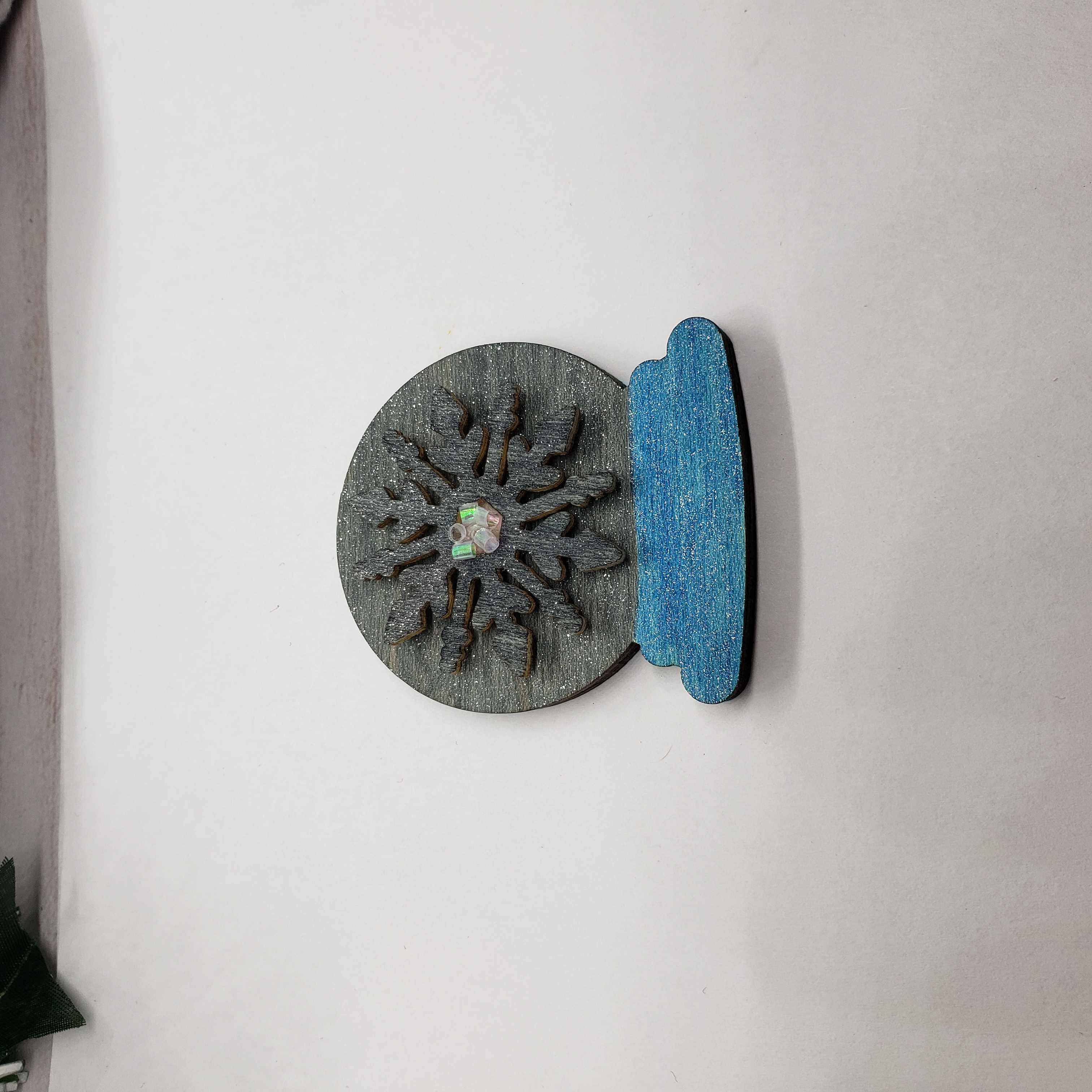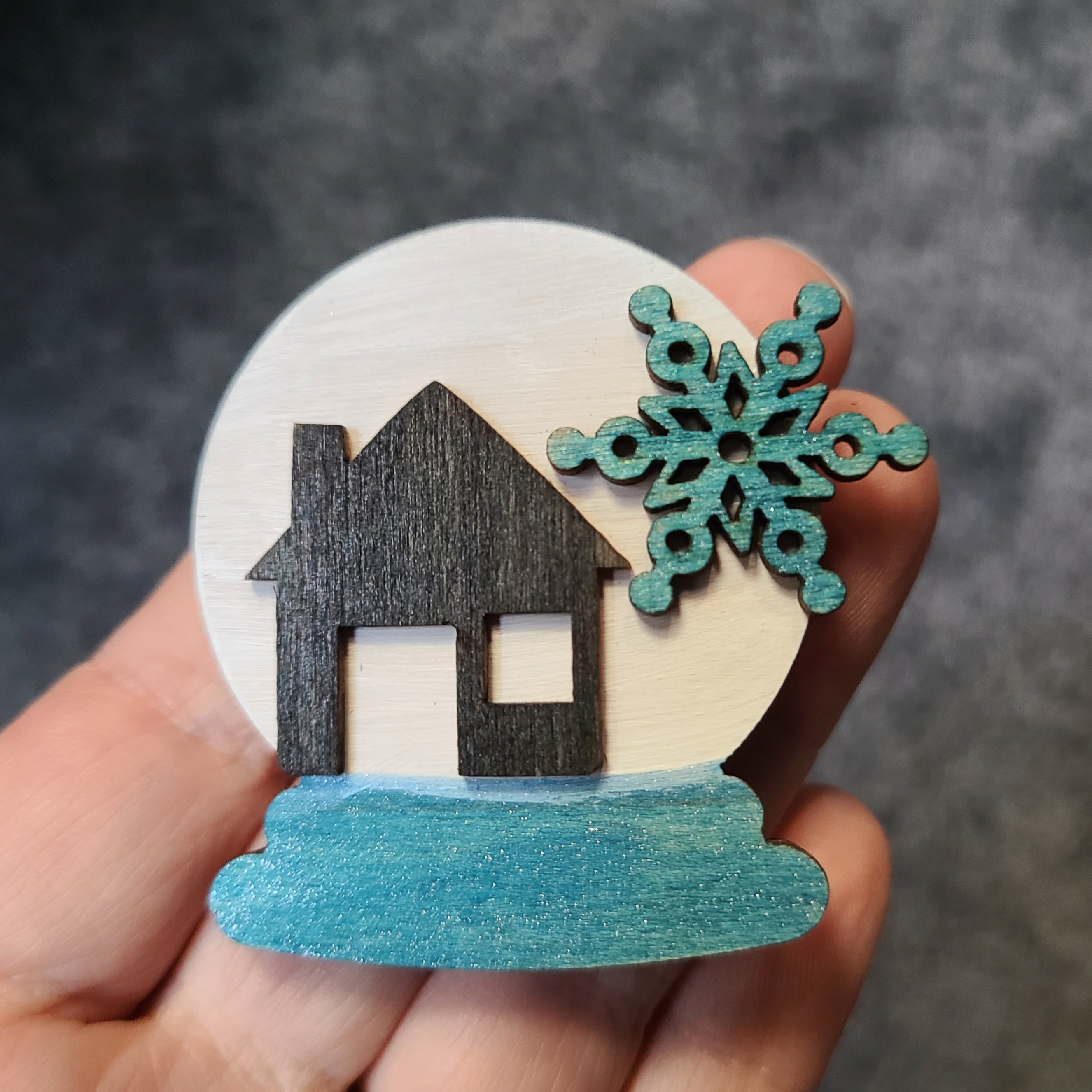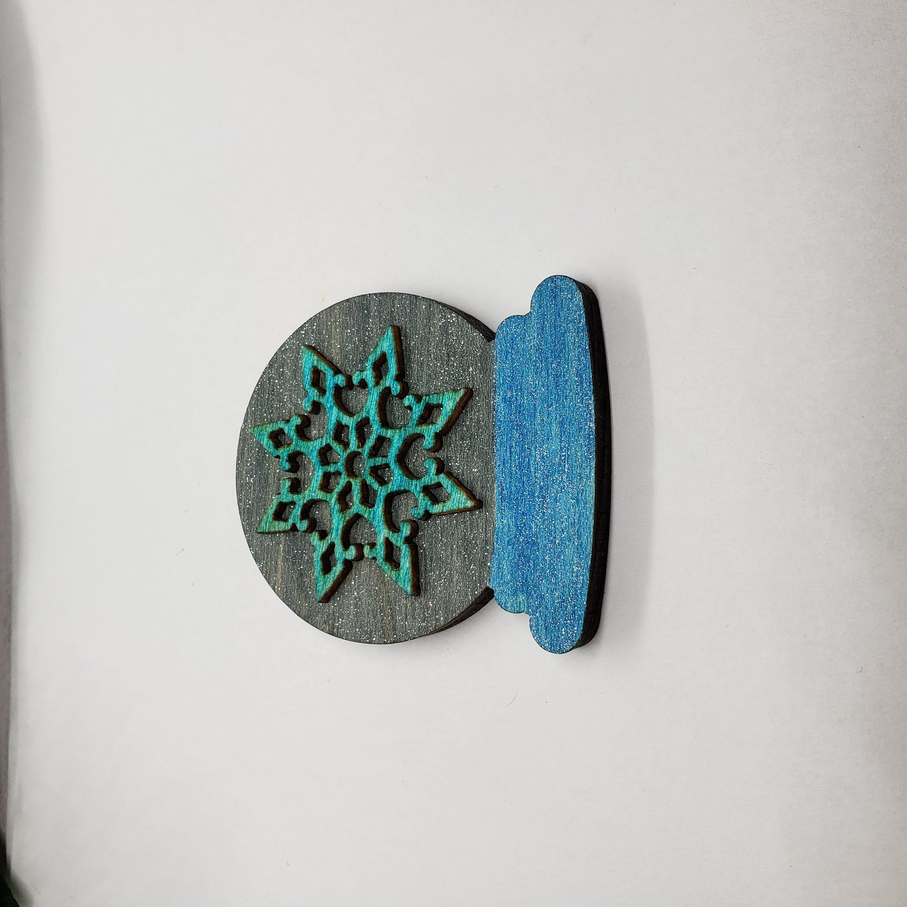 This snow globe magnet can be painted any color and can also have a different design. The examples features a house & snowflake, or just a snowflake- but we can ad a heart, tree, star, confetti, anything you want.