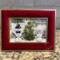 This is an adorably framed picture of a snowman & snowlady made from river rocks. Each is creatively decorated with adorable accessories. The tree is decorated with colorful ornaments. The background is a fitting holiday scene. The frame measures 6-1/4"h x 8-1/4" w & is a beautiful suede material with an easel back. It would make an amazing gift or a new decoration for your home.