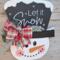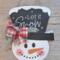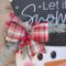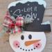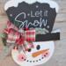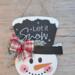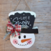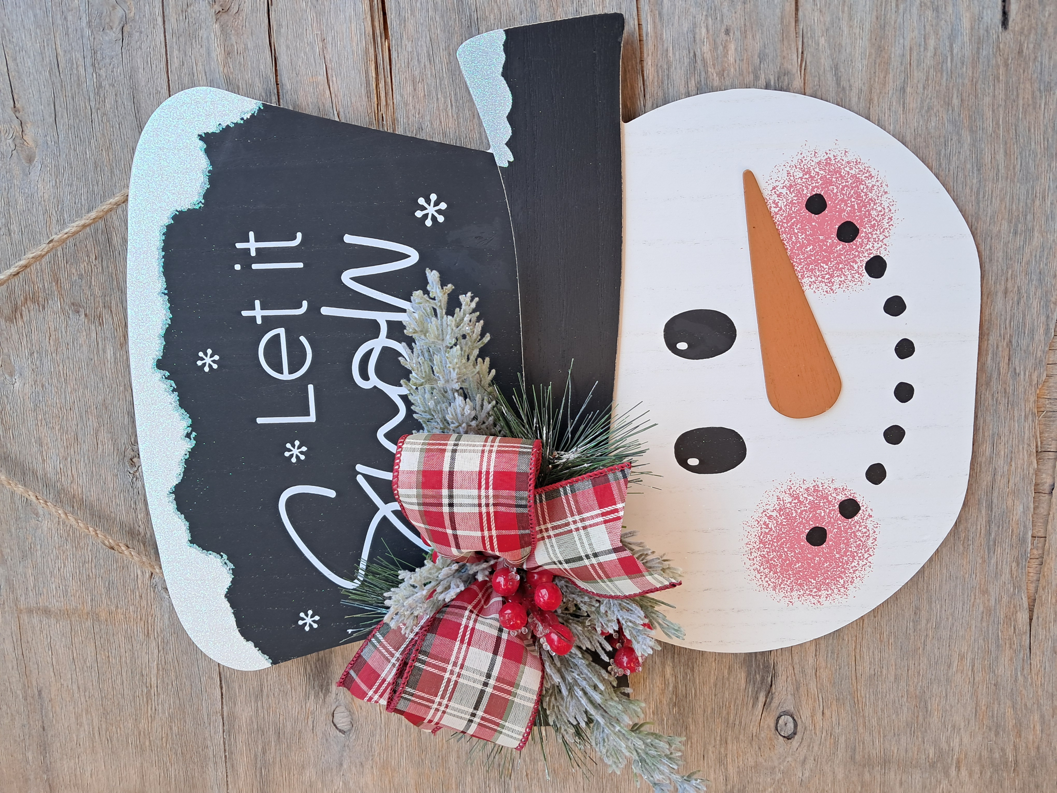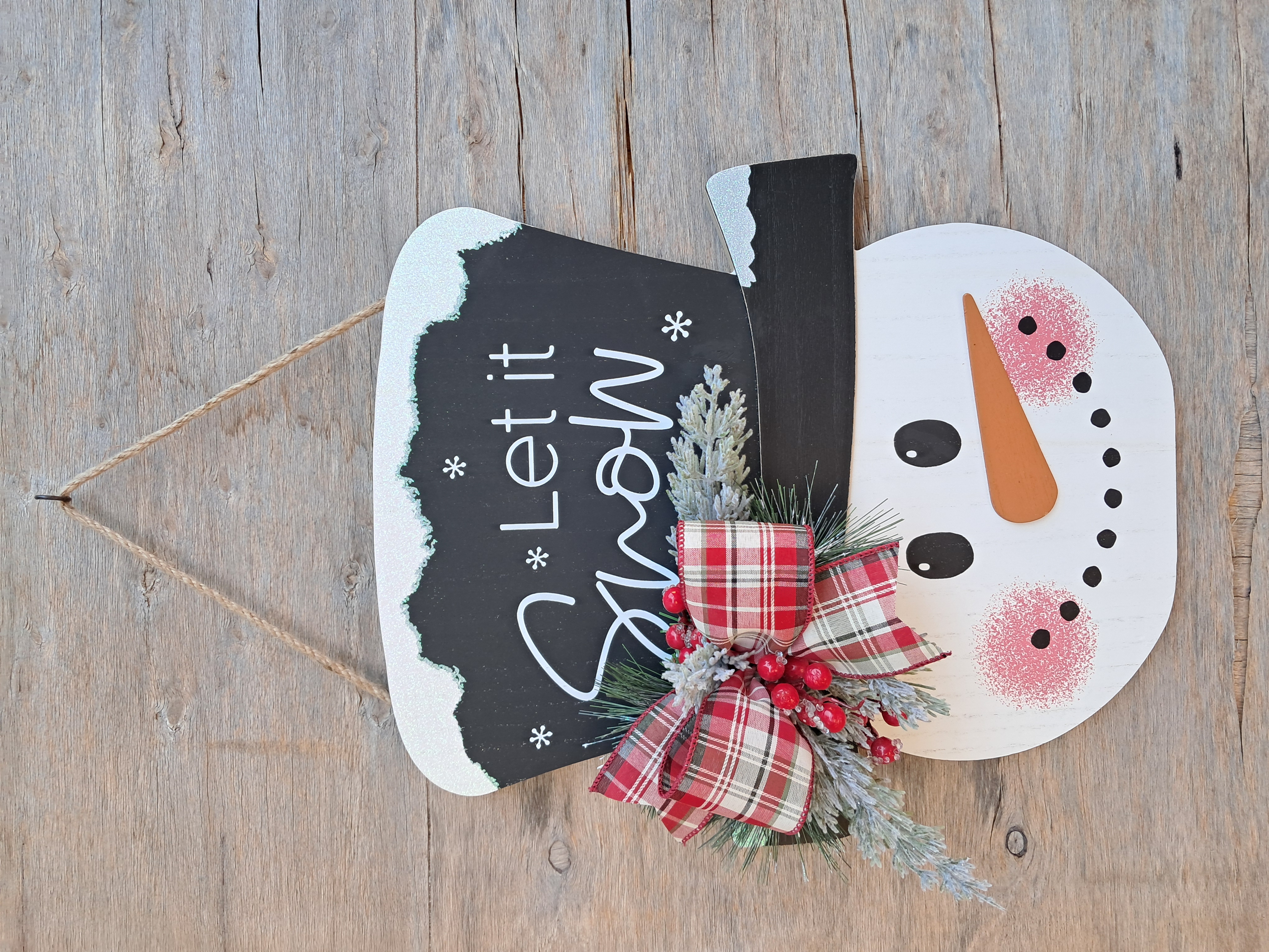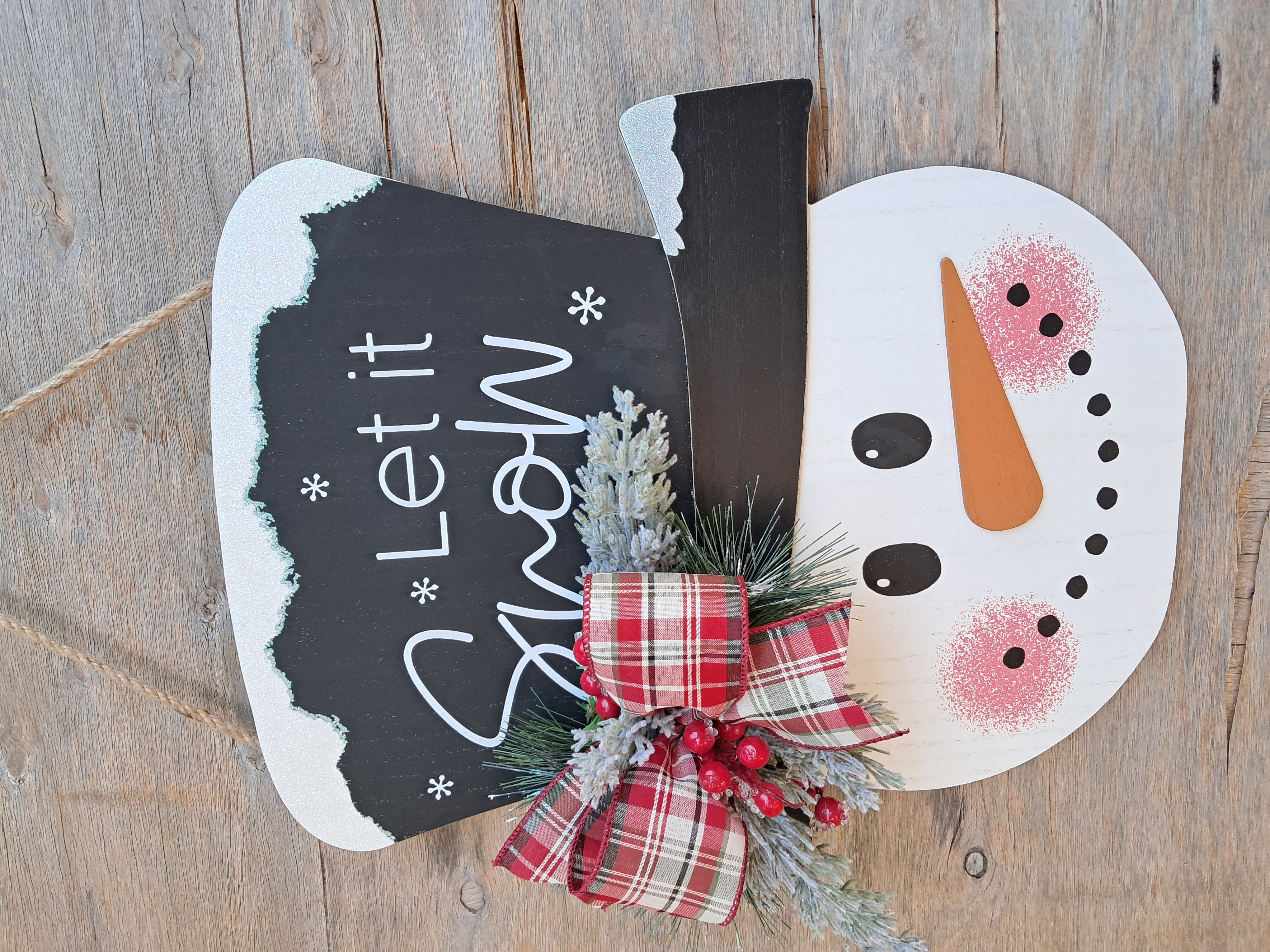 Bring a touch of whimsy and cheer to your holiday season with this delightful snowman door hanger. Adorned with glittery pine, flocked cedar, and iced berries, the snowman’s festive hat is finished with a festive red plaid bow for the perfect pop of Christmas charm.