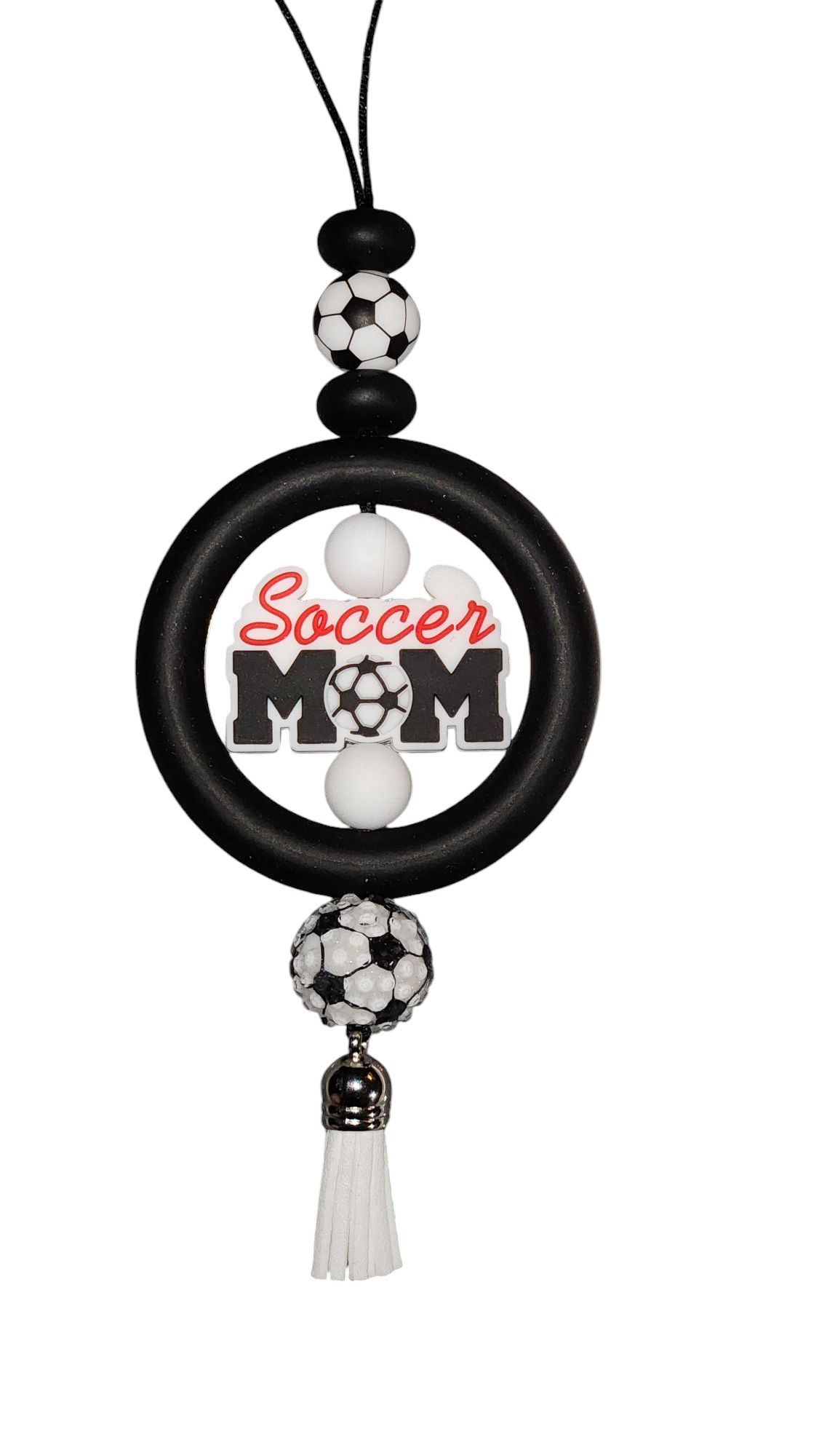 Show your soccer mom pride with this silicone beaded soccer mom car charm.