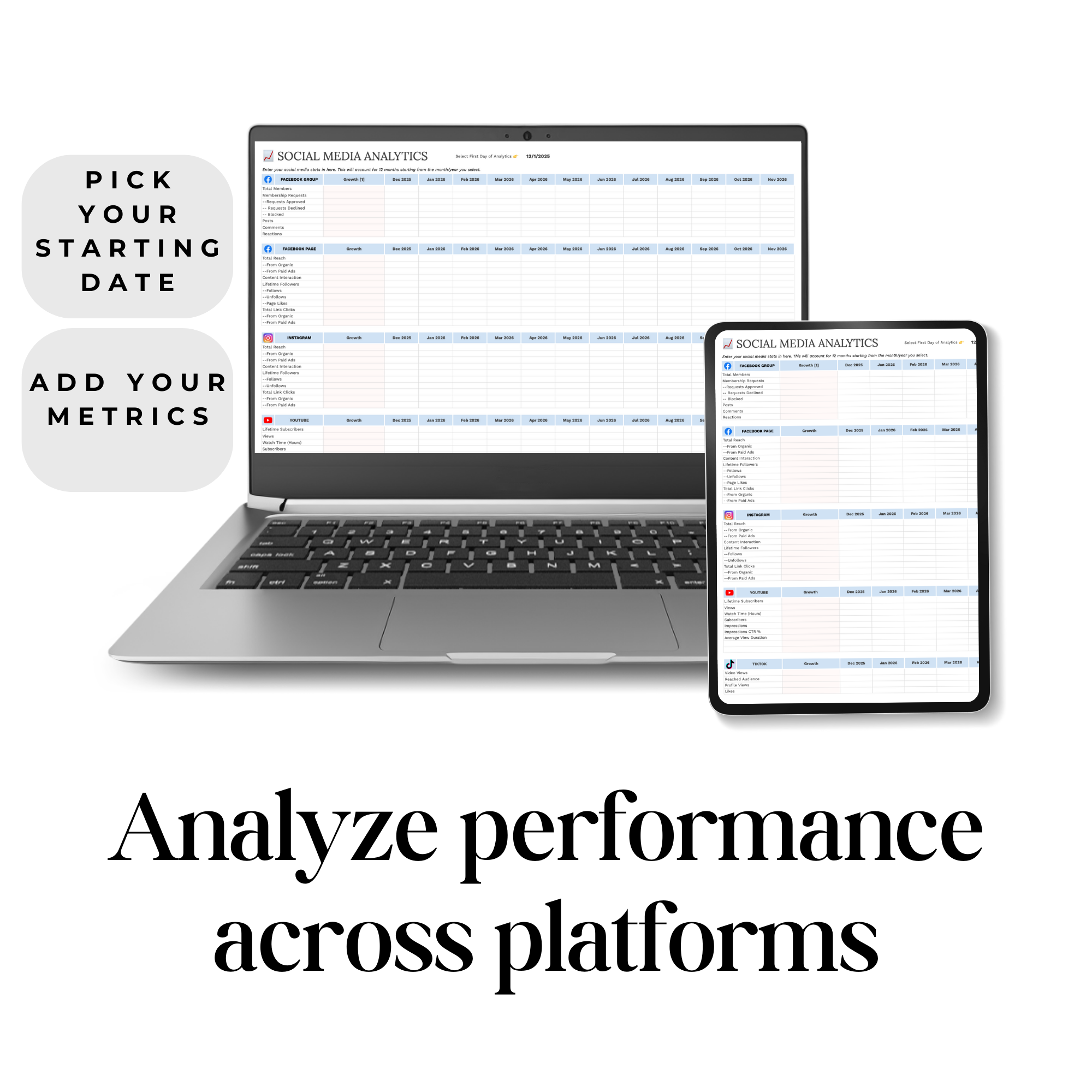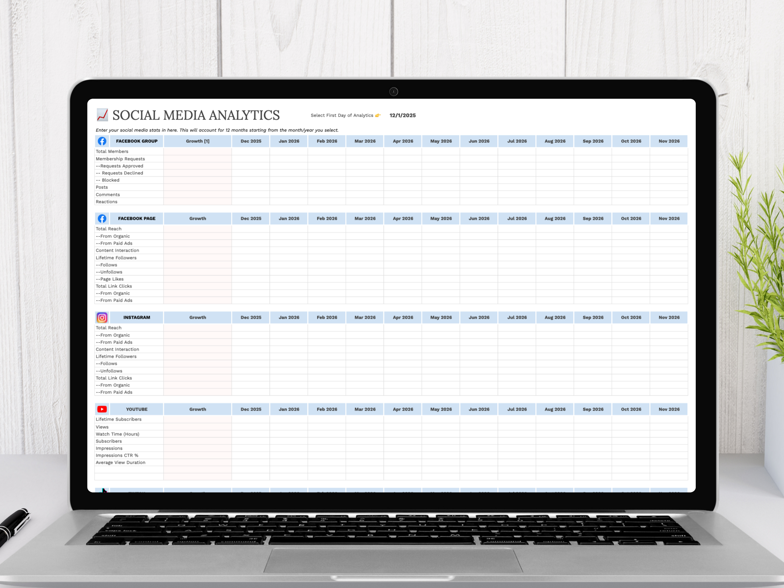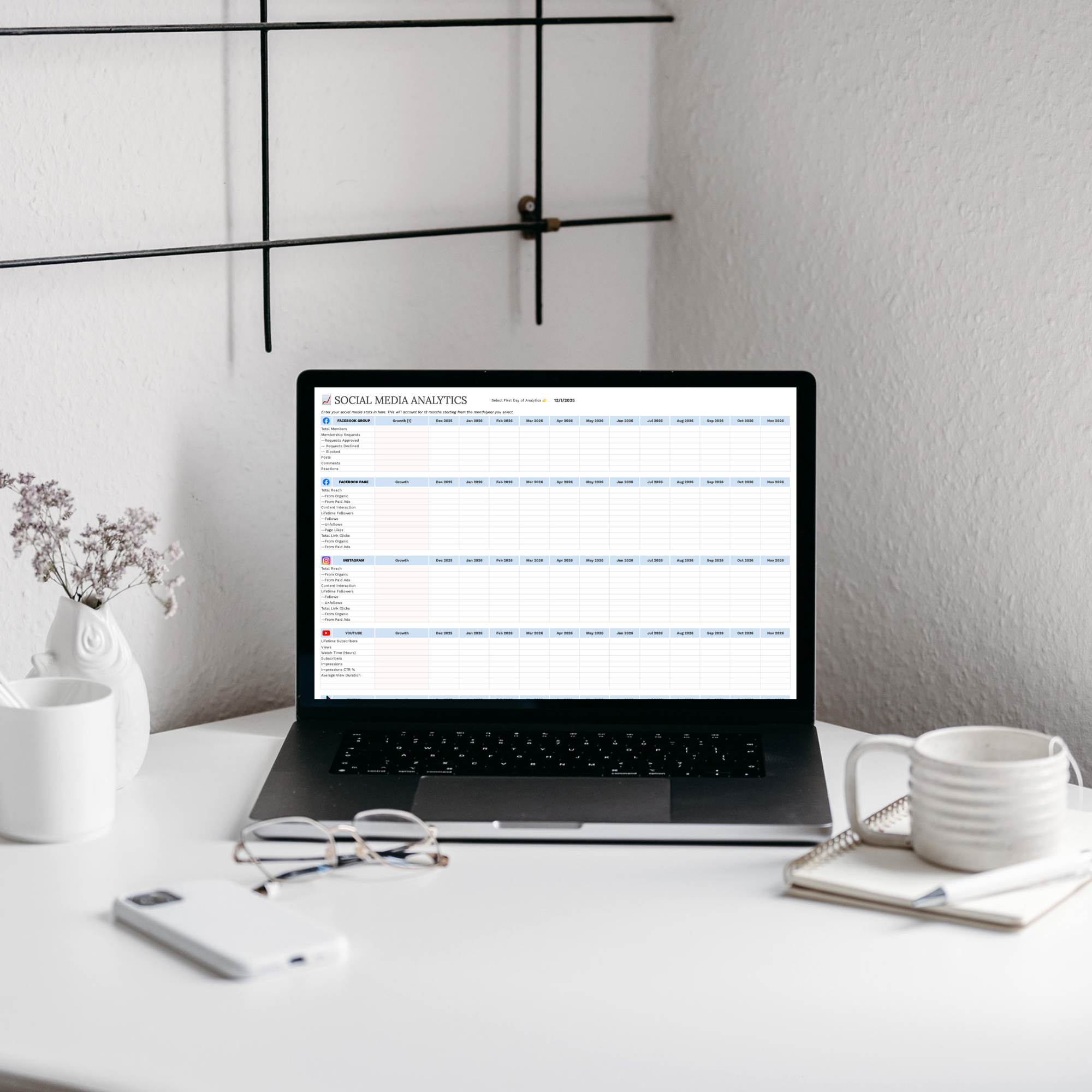 Take control of your social media growth with this easy-to-use Social Media Analytics Tracker! Perfect for social media managers, small business owners, and digital marketers, this template helps you monitor key stats, track engagement, and analyze performance across all your favorite platforms—including YouTube and Pinterest.