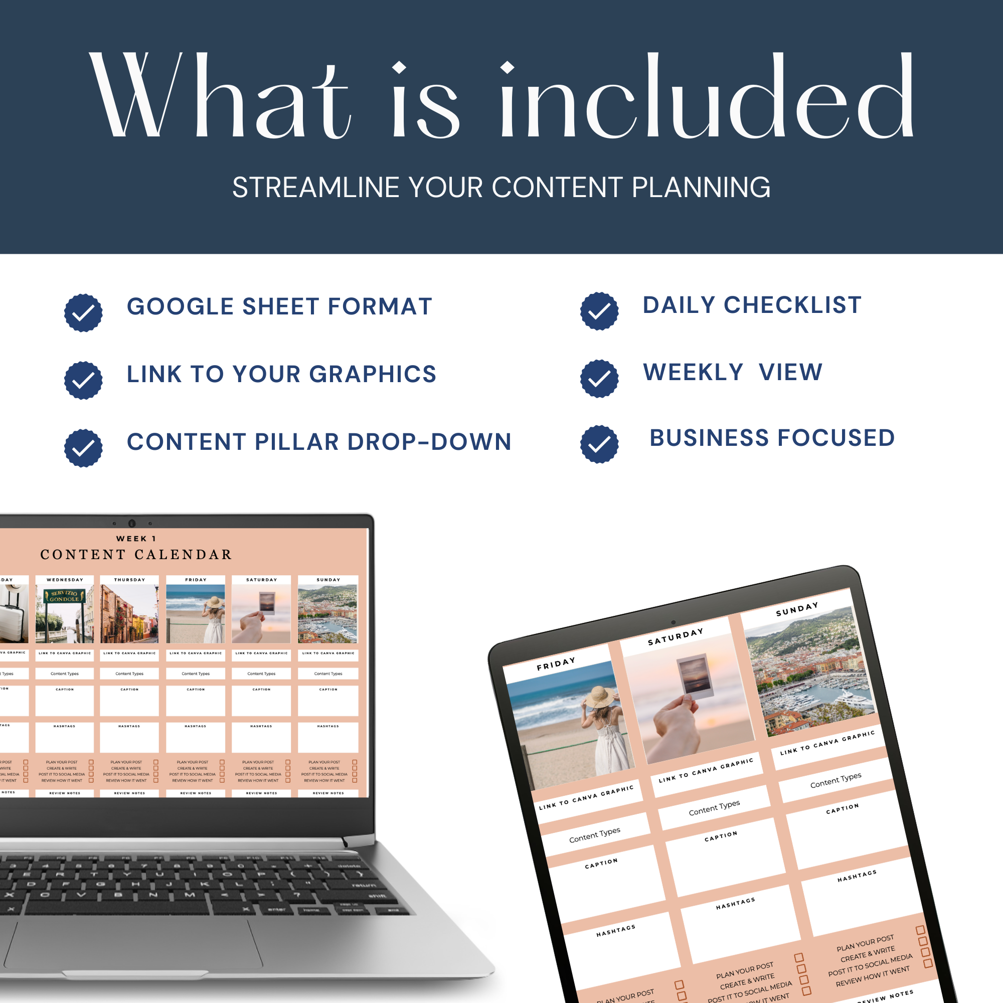 Stay organized and simplify your social media workflow with this business-focused Google Sheet content planner! Designed for social media managers and small business owners, this digital planner helps you plan, create, and review your posts—week by week.