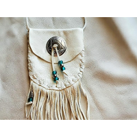 Everything I sell is made in my Arizona, USA workshop with an emphasis on quality over quantity. The leather pouches I make with high quality Elk and Deer hide that I hand pick from various vendors. I use only glass beads, natural gemstones, metal, and authentic antler/bones as embellishments. All my products are proudly made in the USA. Each one is a unique one of a kind work of art. My products are already made when they enter the shop so they are ready to ship as soon as you buy them.