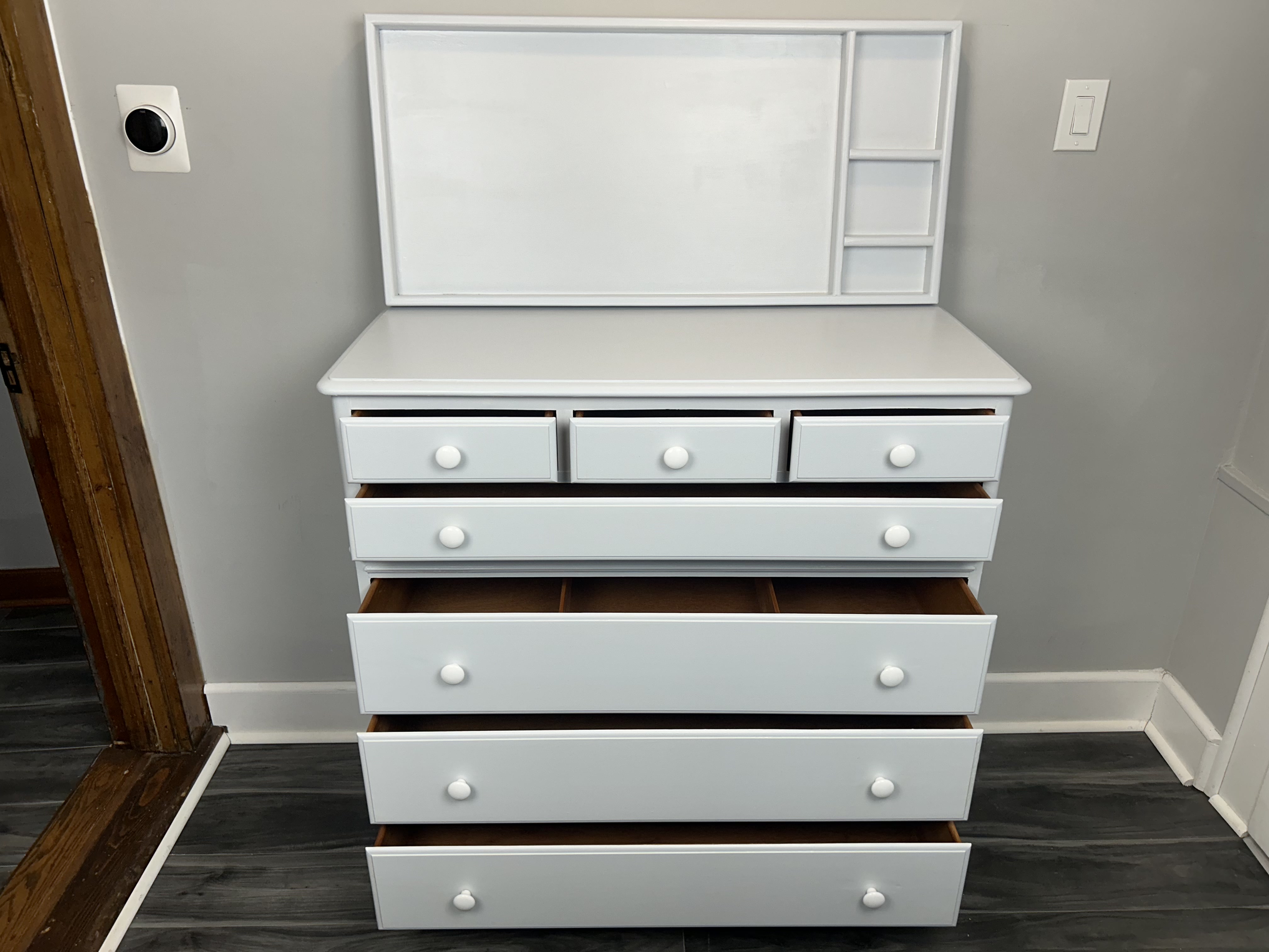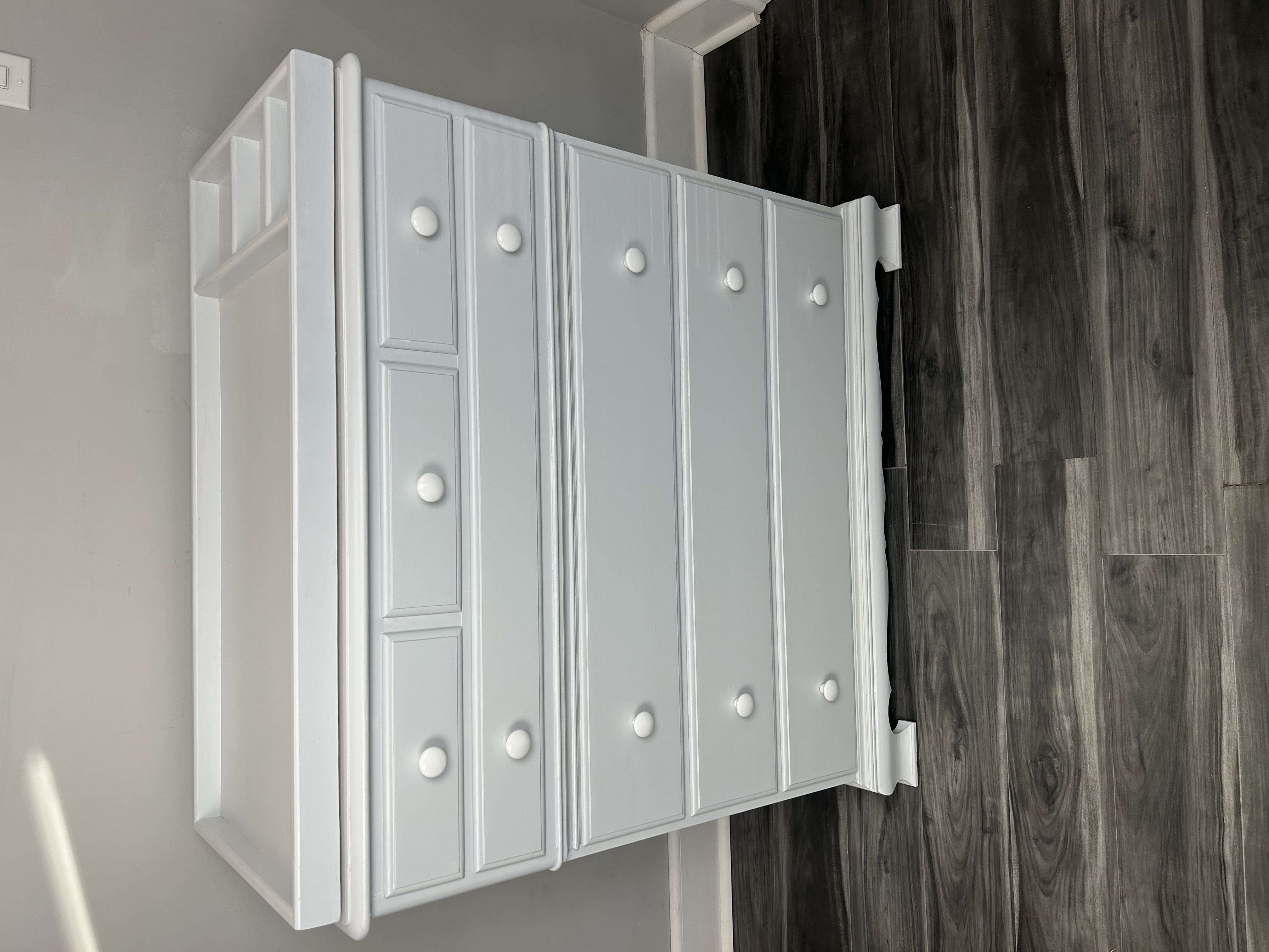 Whether you are looking for a dresser on sale or needing to replace your current furniture, this white furniture set is in great condition and it can be yours today! This furniture has been modified and is great for someone who needs help with a newborn. Deciding what to get can be a little draining and you may feel skeptical however, we can coordinate a time so that you can come see the set and decide with no obligation.