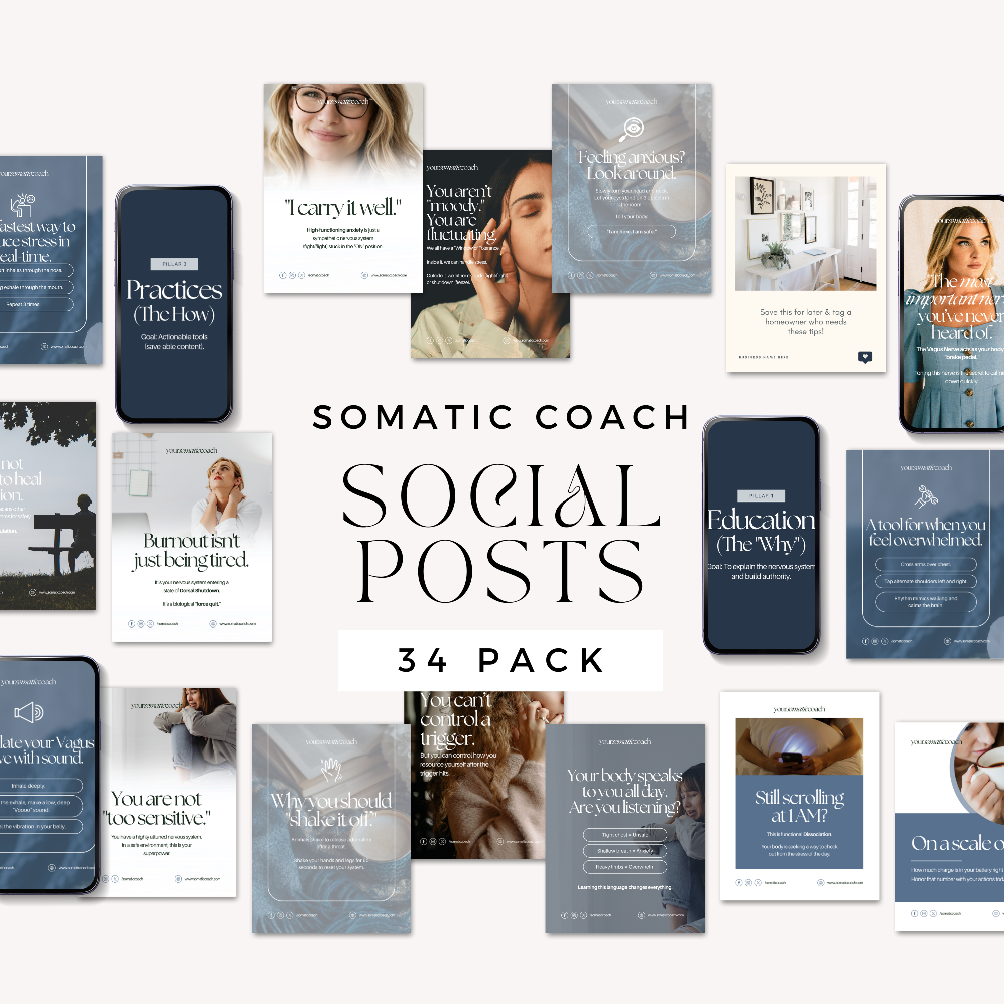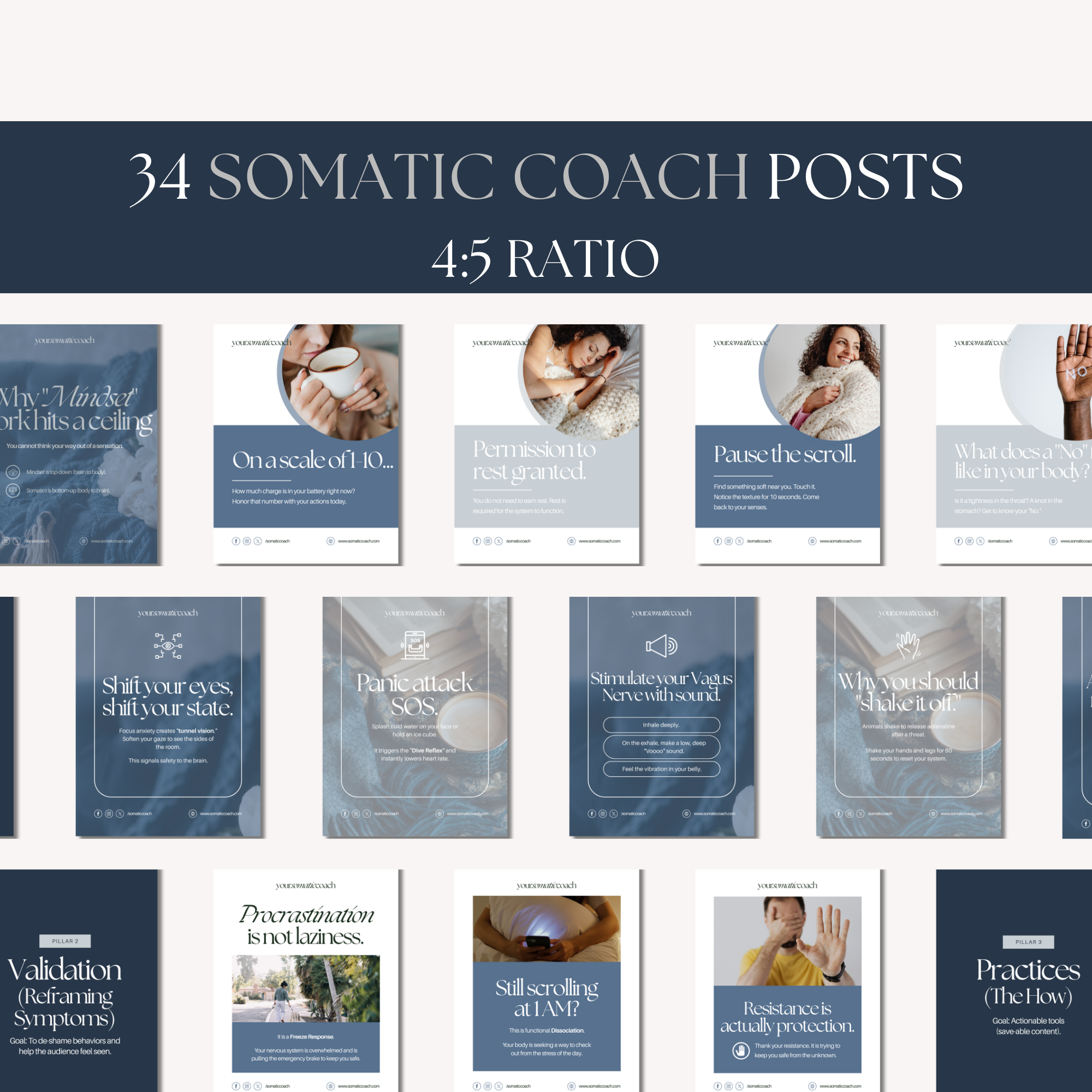 Perfect for: Somatic coaches, nervous system educators, therapists, wellness coaches, life coaches, and mental health content creators who want professional content that supports trust, engagement, and conversions.