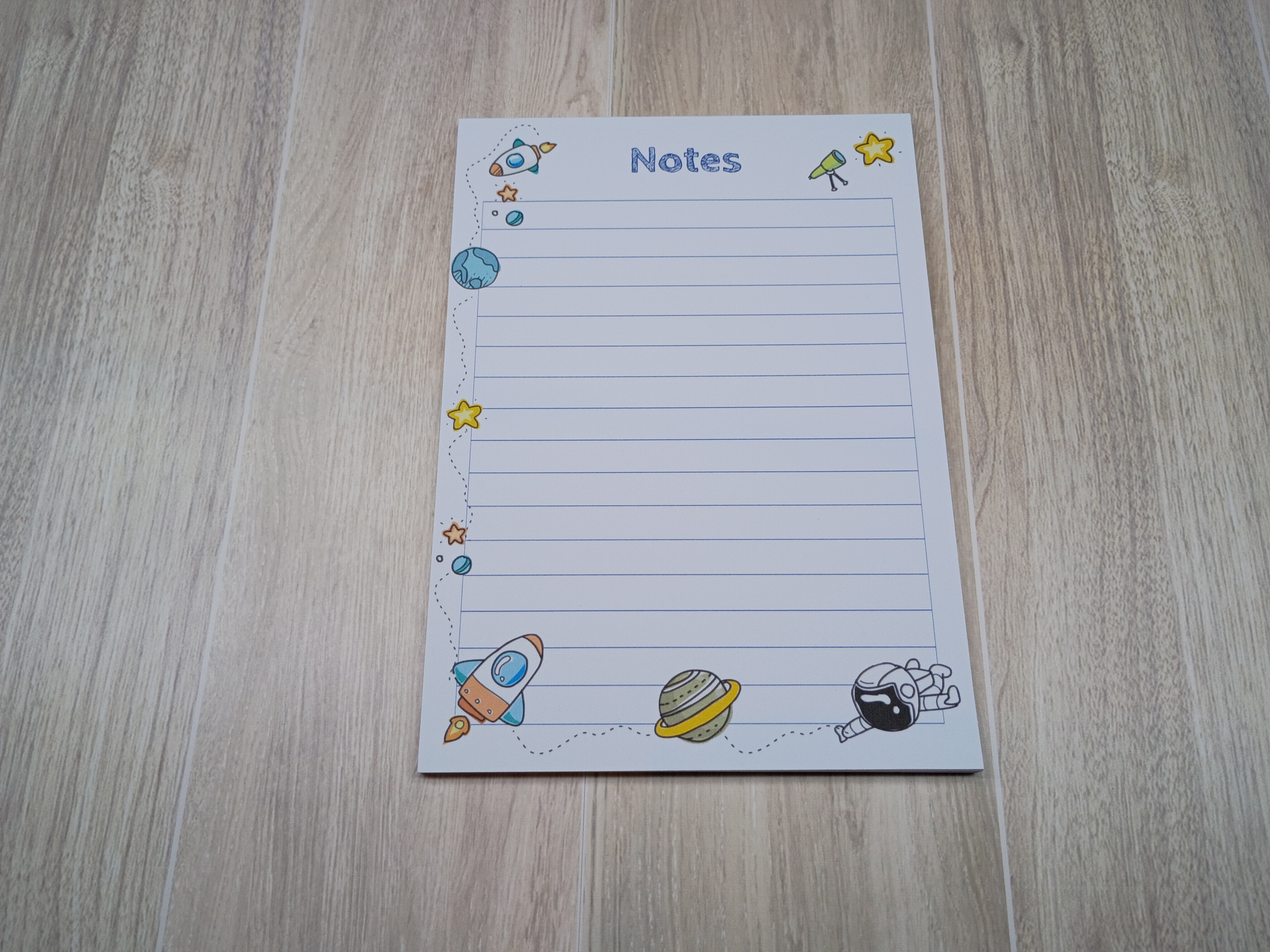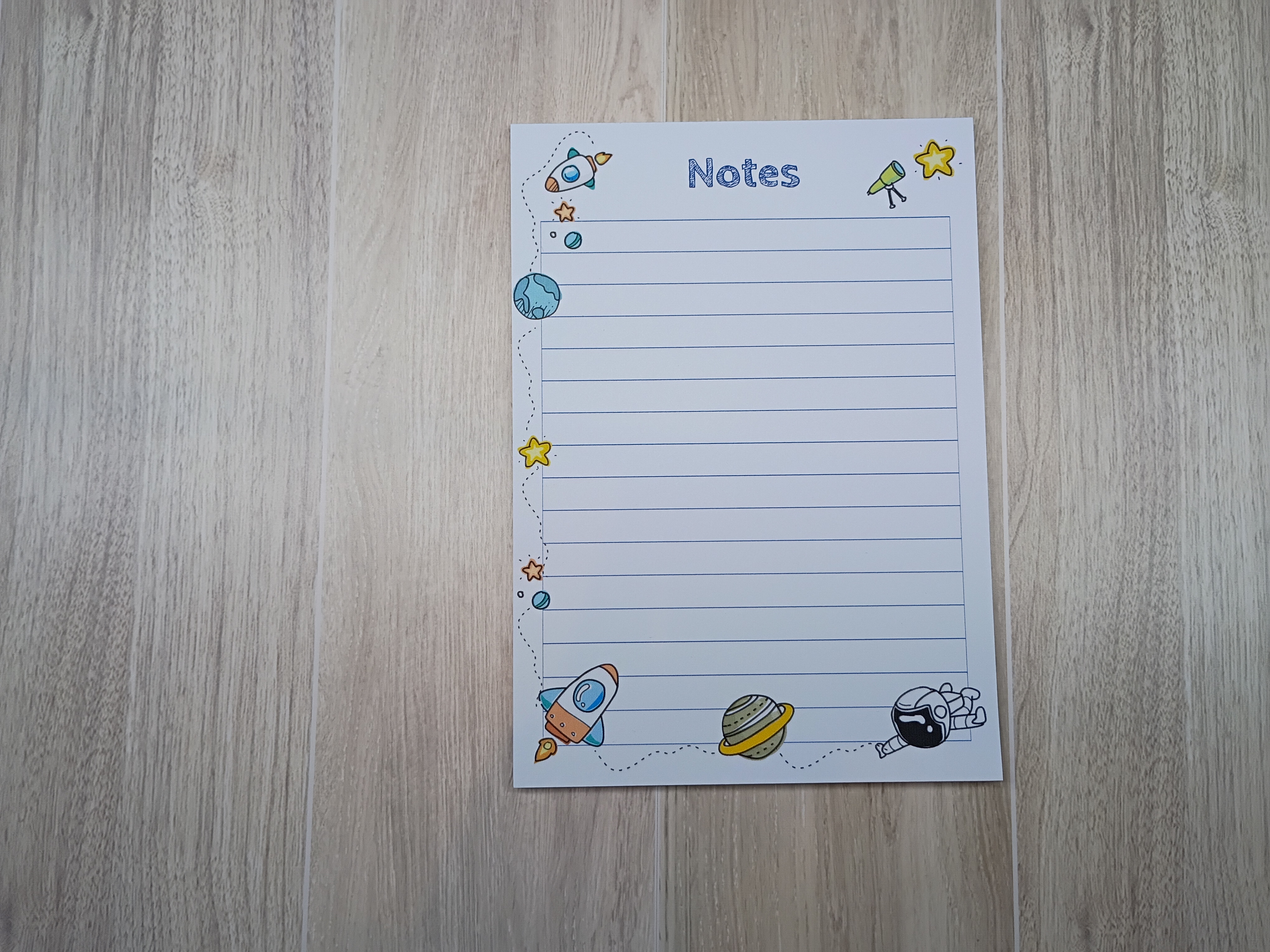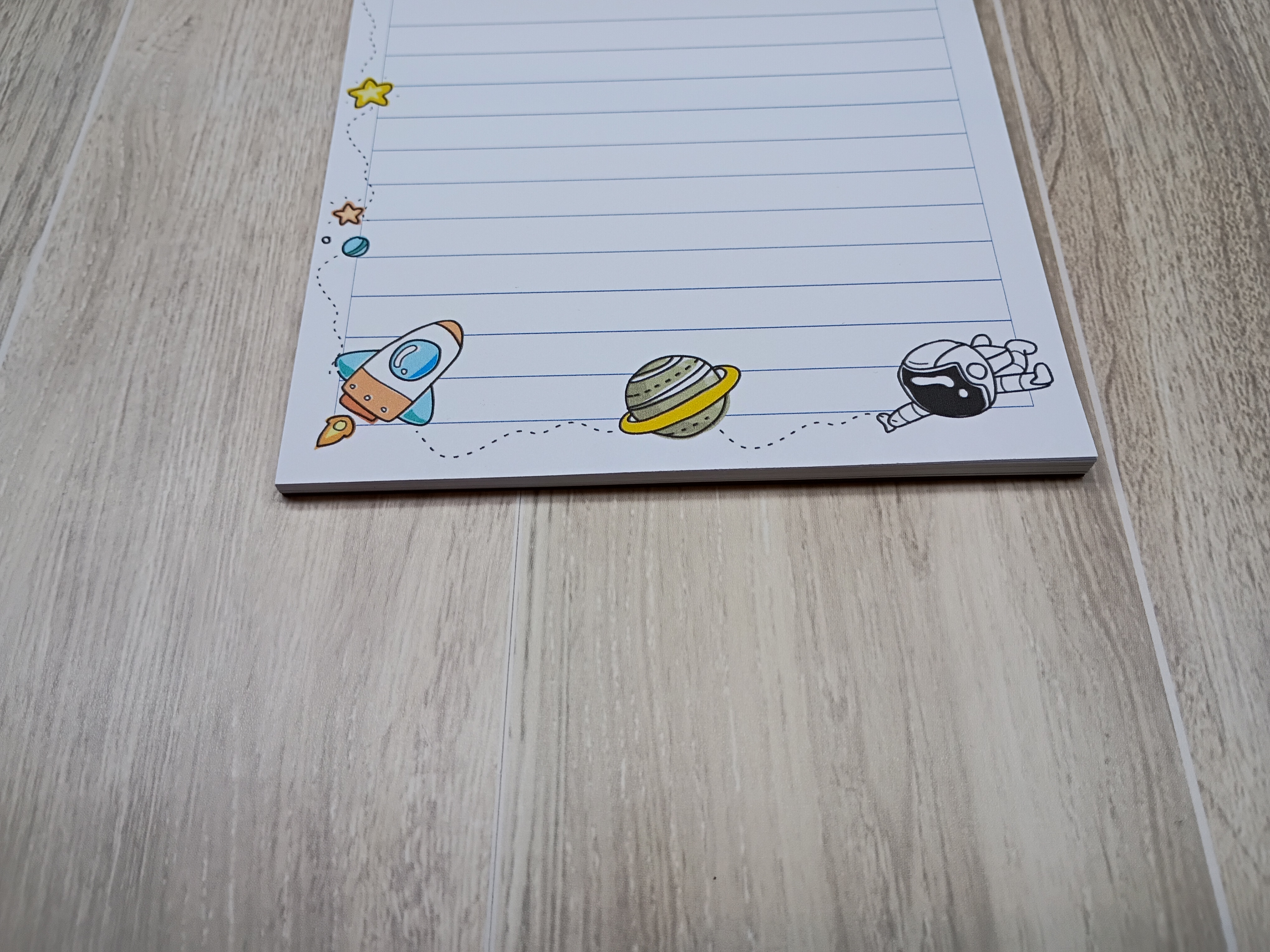 Blast off into productivity with this fun Space Tear-Away Notepad. Featuring stars, an astronaut, a spaceship, and a planet, this pad brings a touch of cosmic wonder to your everyday planning. Perfect for your desktop or workspace, it helps you capture what matters most—at a glance.