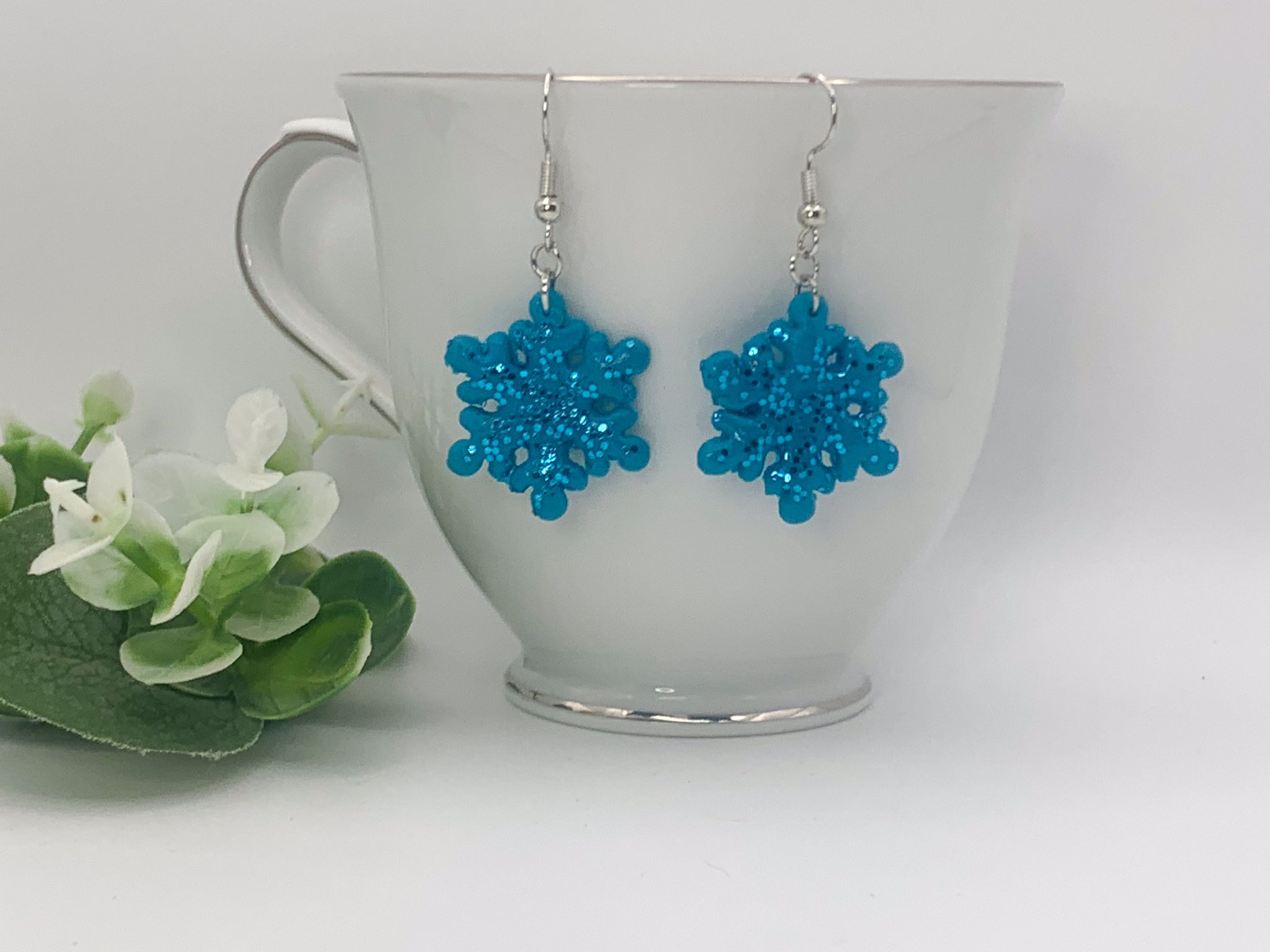 Make your winter style shine with these glittery teal snowflake earrings! Perfect for anyone who loves a little sparkle during the holidays.