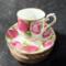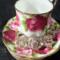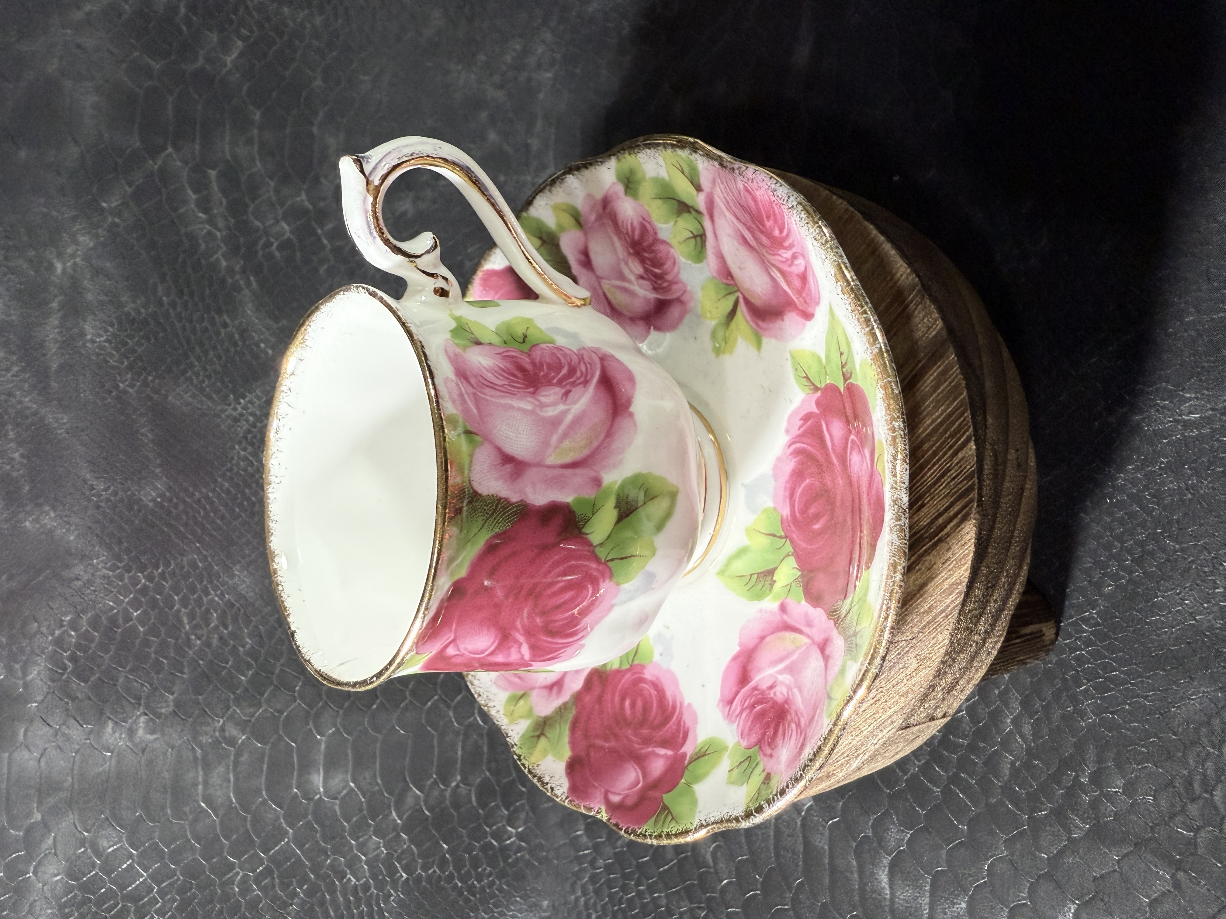 This rose-painted porcelain teacup reveals swirling patterns when filled with warm liquid, as if listening for secrets.