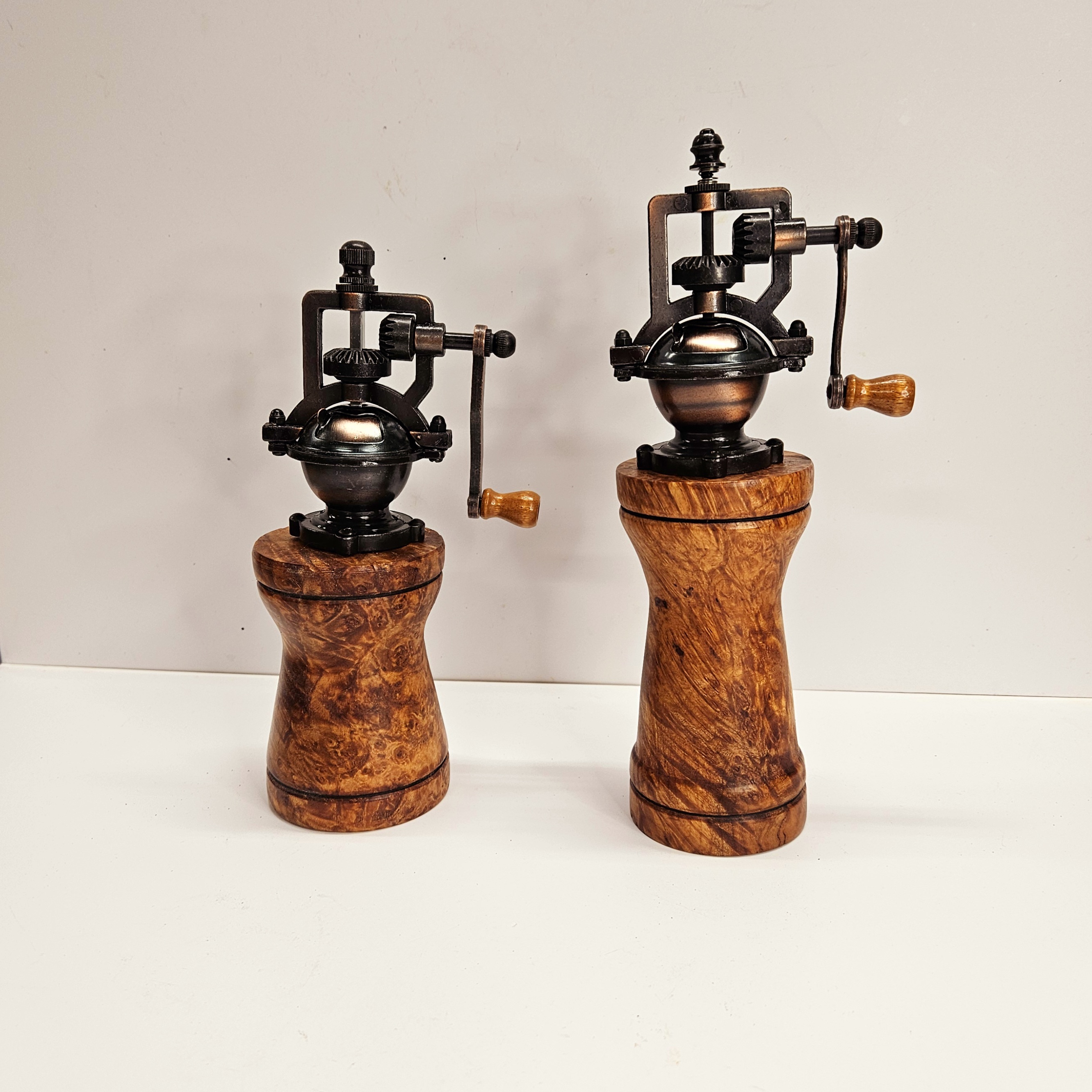 Handmade antique-style Salt Mill and Pepper Mill Set