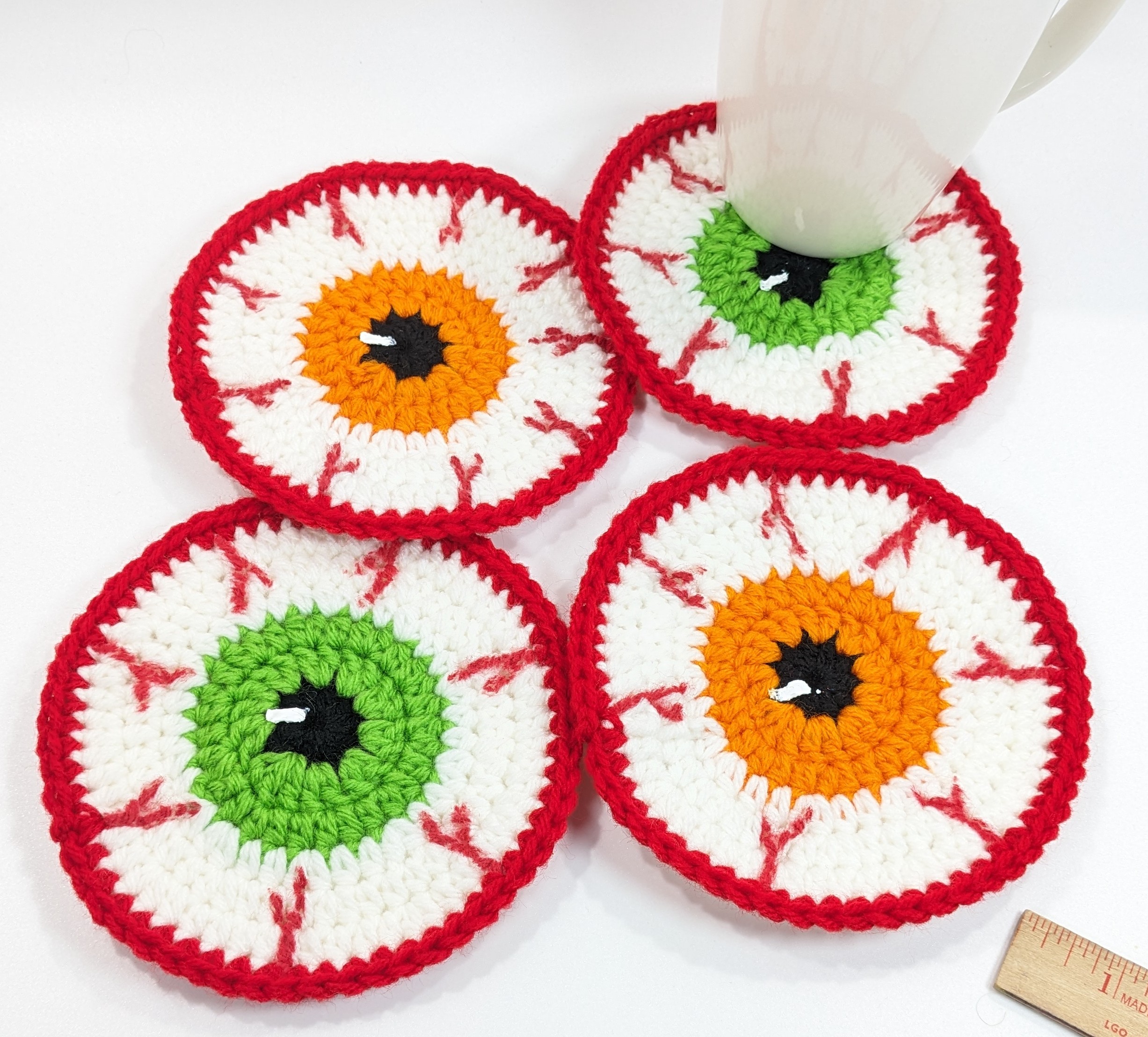 Also this Spooky Halloween Coaster Set is crochet with acrylic yarn. I also used fabric paint for some details.