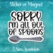 Spoon Theory Humor Sticker or Magnet | Sorry I'm All Out of Spoons